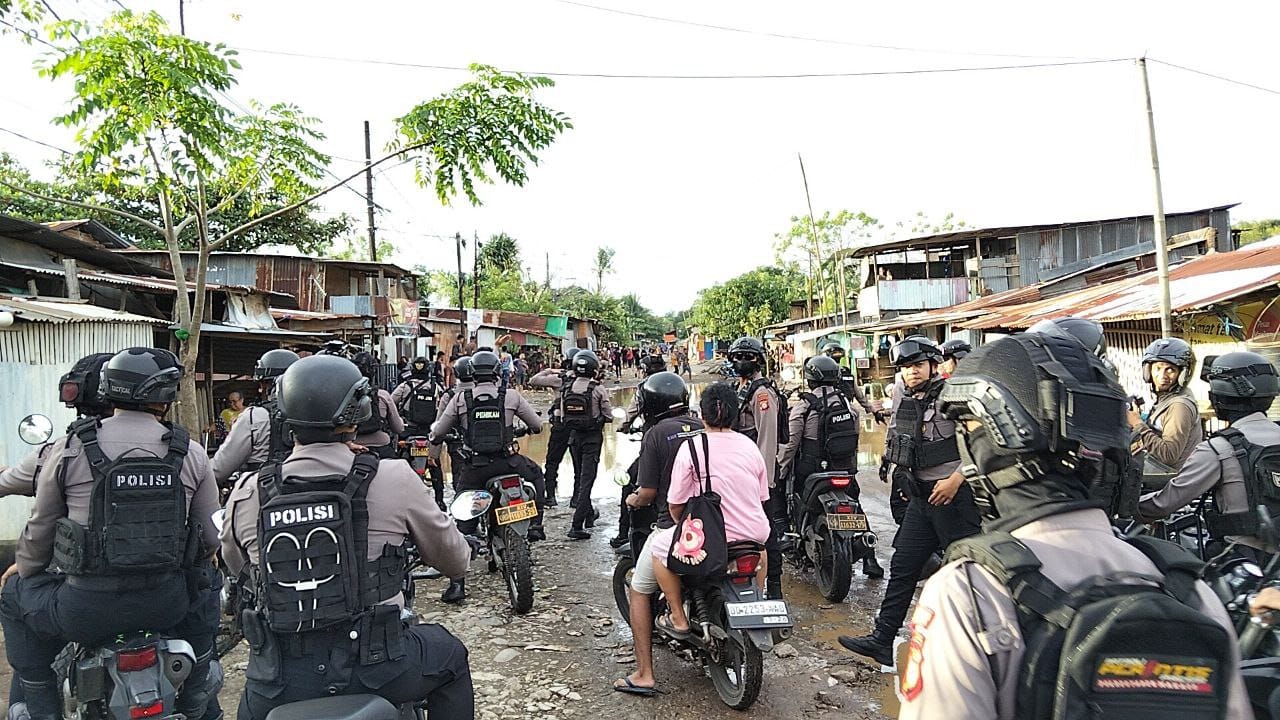 Gabungan personil Jatanras dan Satuan patmor presisi Samapta Polrestabes Makassar dipimpin oleh Kabag Ops Polrestabes Makassar AKBP Darwis, SE.,MH dan Plt. Kasat Samapta Polrestabes Makassar KOMPOL Joko Pamungkas, S.Pd., M.Pd siaga dilokasi dan imbau serta membubarkan warga yang kumpul kumpul agar tidak memancing situasi