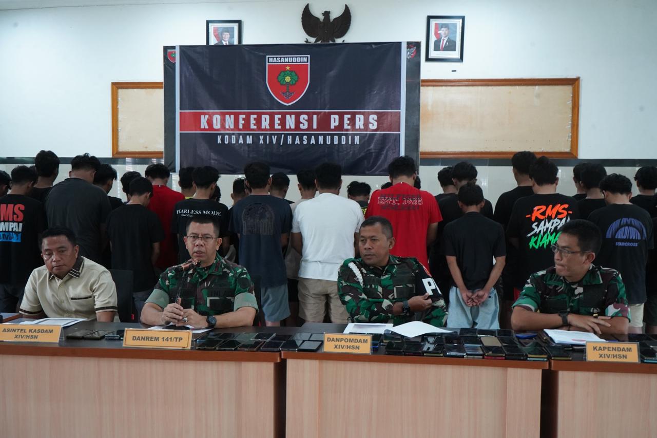 Turut hadir pula dalam Konferensi Pers tersebut, Kolonel Cpm Imran Ilyas (Danpomdam XIV/Hsn), Kolonel Inf Robinson Tallupadang S.ip (Asintel Kasdam XIV/Hsn), Kolonel Arm Gatot Awan Febrianto (Kapendam XIV/Hsn).
