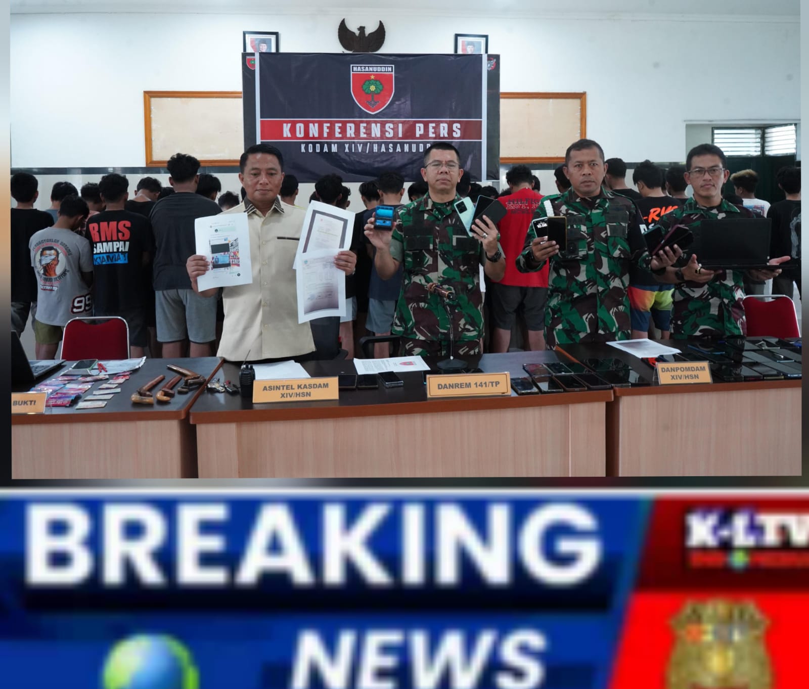 klivetvindonesia.com, Makassar, Sulsel — Komandan Korem 141/TP Brigjen TNI Andre Clift Rumbayan, S.Sos., M.M., hadiri Konferensi Pers terkait hasil penangkapan sindikat penipuan online (Passobis) dengan modus investasi dan penjualan fiktif. Pada tanggal 25 pukul 10.45 WITA, di Aula Deninteldam XIV/Hsn Jl. Urip Sumoharjo Kota Makassar, Kodam XIV/Hsn.