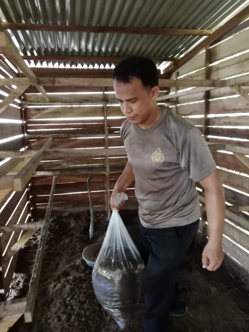 Dukung Ketahanan Pangan, Bhabinkamtibmas Polsek Delta Pawan Inovasi Pembuatan Pupuk Kandang Alami dari Kotoran Ayam Kampung