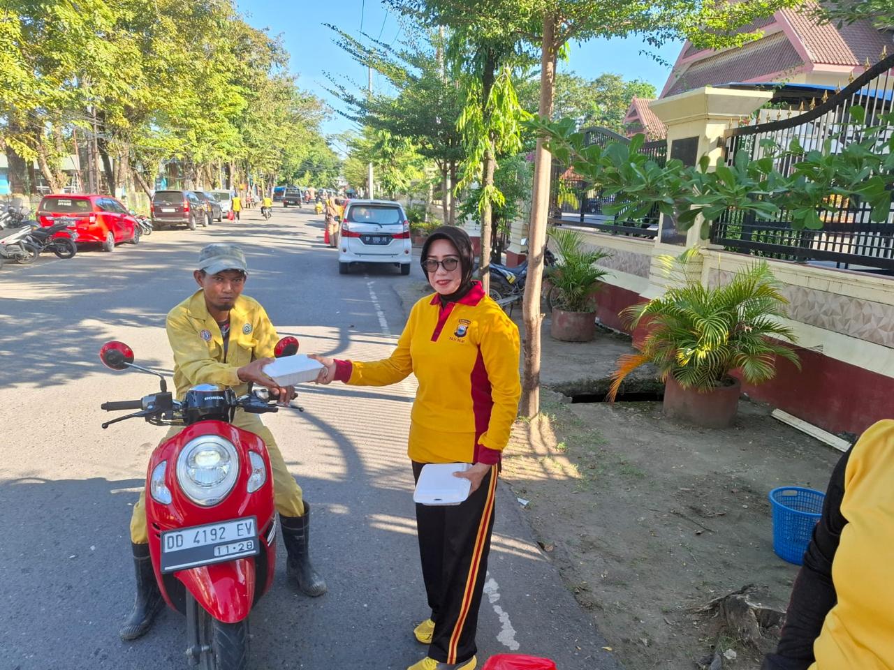 Kegiatan ini dipimpin langsung oleh Kabag SDM Polres Pangkep, KOMPOL Hj. Andi Husnaeni, S.Sos., dengan membagikan 100 kotak nasi kepada masyarakat, khususnya pengendara bentor dan warga yang melintas di sekitar Mapolres. Aksi berbagi ini disambut antusias oleh warga yang menerima bantuan dengan penuh syukur dan wajah ceria.