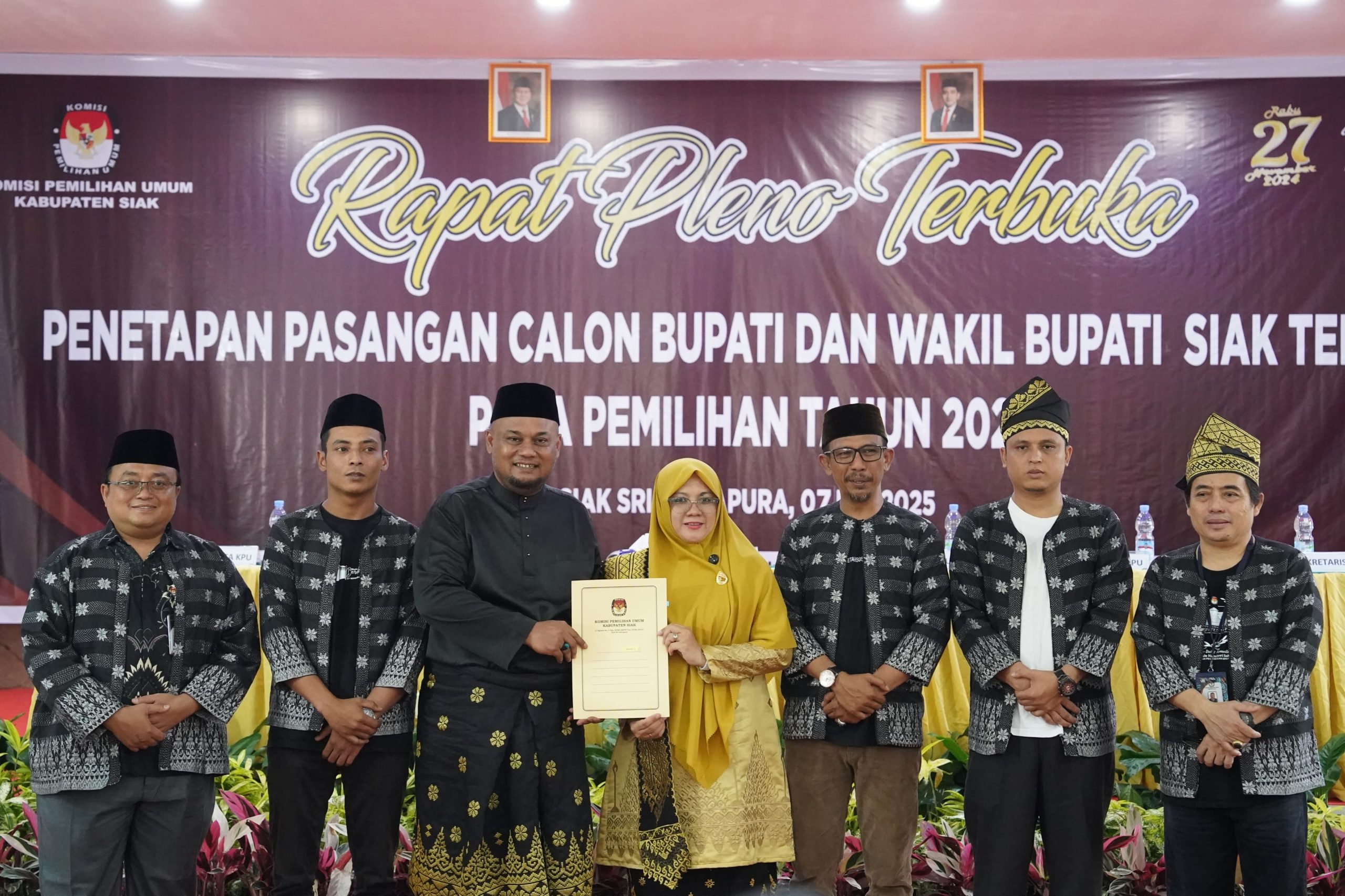 Puncak acara ditandai dengan penyerahan SK Penetapan KPU kepada pasangan calon terpilih serta partai politik pengusung. Dalam sambutannya, Bupati terpilih Dr. Afni Zulkifli menyampaikan rasa syukur dan apresiasi kepada masyarakat Siak. Ia juga menyampaikan penghargaan kepada calon Bupati nomor urut 1, Ir. H. Irving Kahar Arifin, ME, atas sikap politik yang konstruktif.