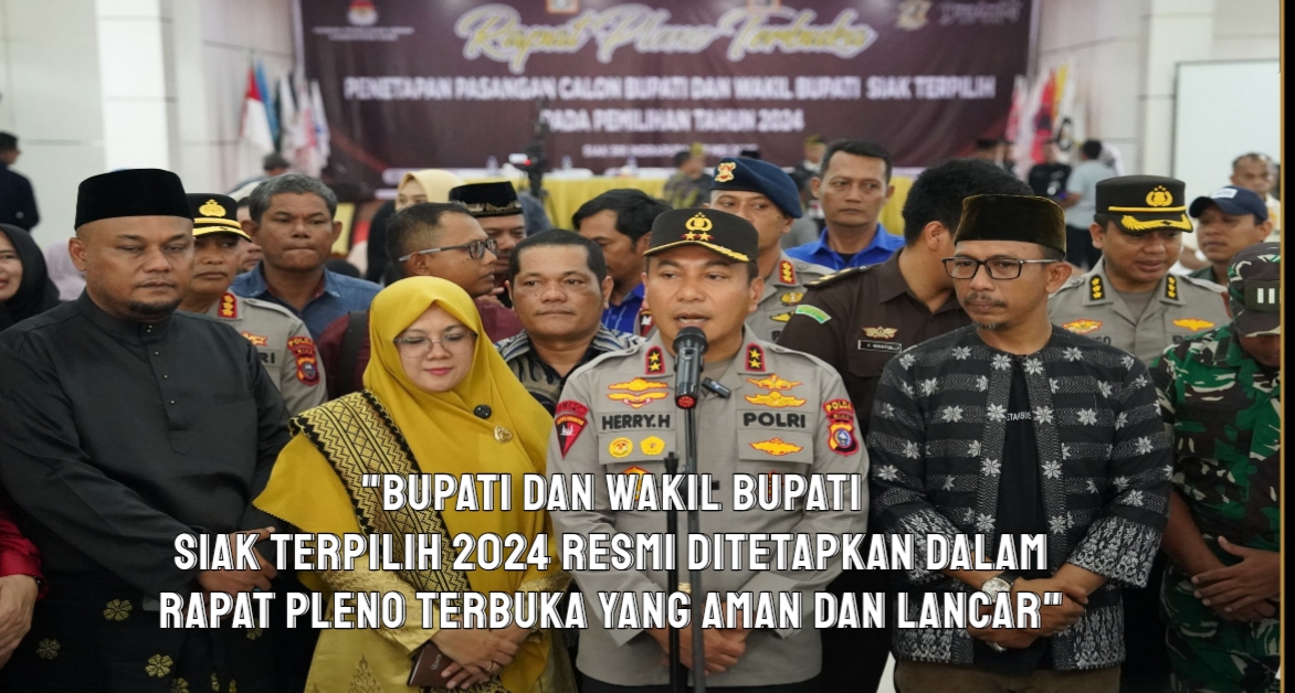 Kapolda Riau Irjen Pol Herry Heryawan menyampaikan apresiasi dan rasa terima kasih atas suksesnya penyelenggaraan rapat pleno penetapan Bupati dan Wakil Bupati Siak terpilih periode 2024–2029. Menurutnya, rangkaian puncak Pilkada Siak ini merupakan bagian penting dari pesta demokrasi yang harus dijalani bersama.