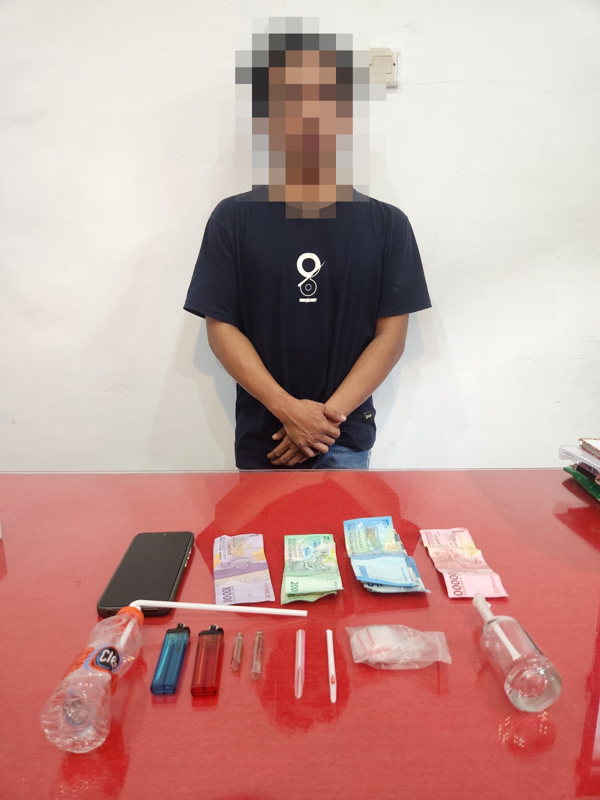 Terduga pelaku N diamankan di sebuah Gang di kawasan Desa payak Kumang Ketapang, dan saat dilakukan penggeledahan di badan dan di dalam rumah terduga pelaku N di wilayah Desa Paya Kumang, Petugas menyita sejumlah barang bukti berupa 2 buah alat hisap sabu atau bong, 2 buah pipet modif sendok sabu, 2 buah korek api gas, Puluhan Kantong klip kosong, 1 buah handphone serta uang tunai 400.000 rupiah.