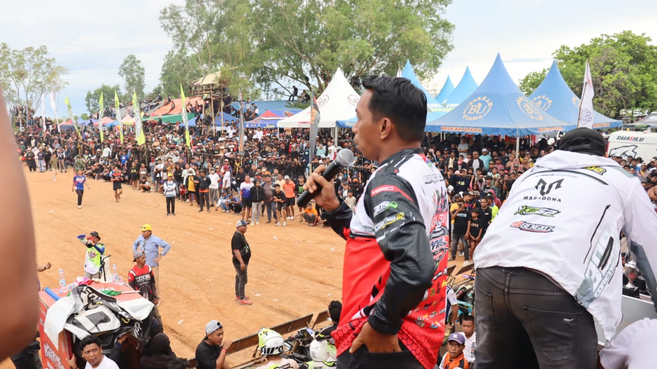 Kehadirannya disambut hangat oleh para pembalap, panitia, dan penonton yang memadati arena balap.