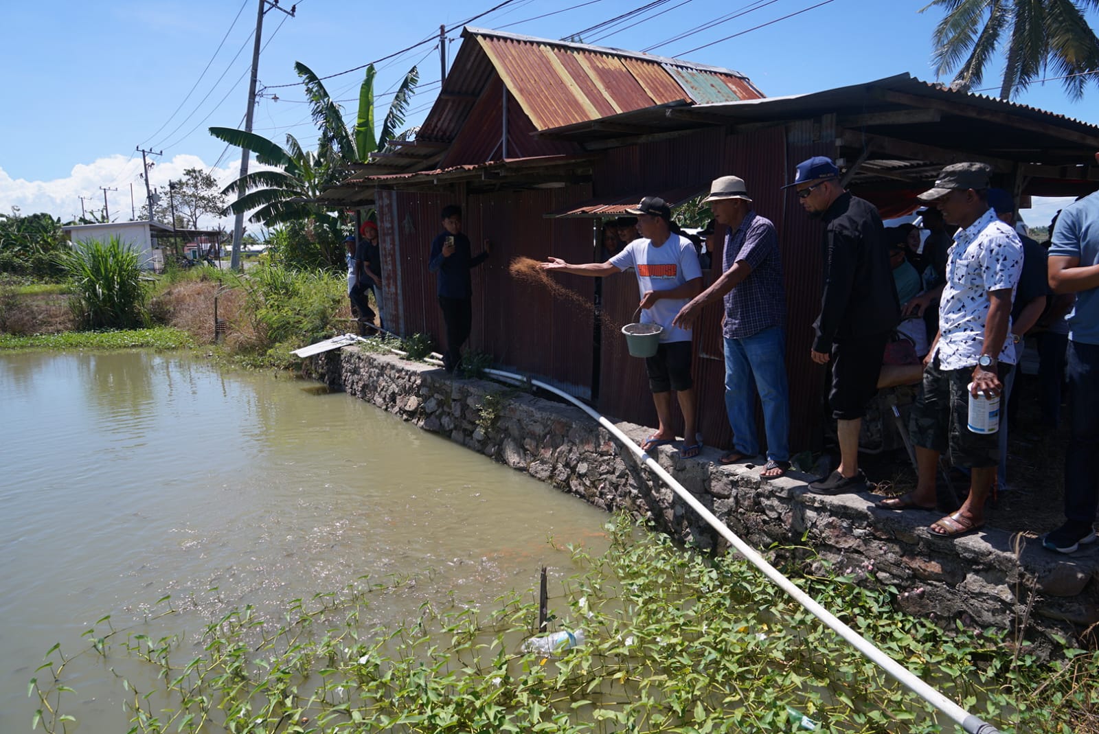 Tanpa canggung, Bupati Syaharuddin menggulung celana panjang dan menebar benih tanpa alas kaki. Aksinya disaksikan para petani, tokoh masyarakat, dan warga setempat.