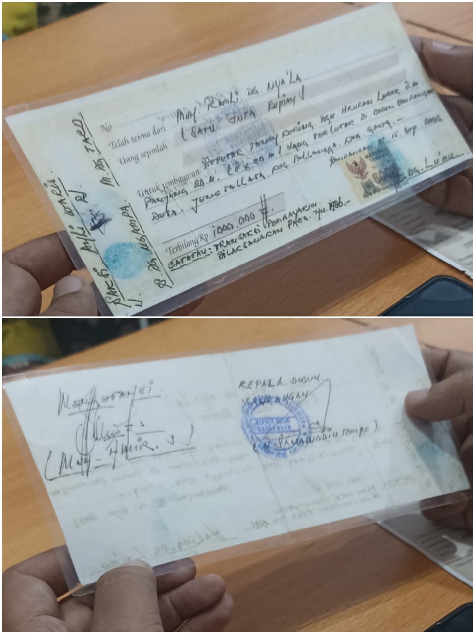 “Kami menilai ini bukan sekadar pemalsuan tanda tangan, melainkan pemalsuan keseluruhan isi kwitansi yang berpotensi menyesatkan dan merugikan pelapor. Ini jelas melanggar Pasal 263 KUHP dan sudah cukup lama mandek di Polres Gowa tanpa kepastian hukum,” tegas Muhammad Sirul Haq.