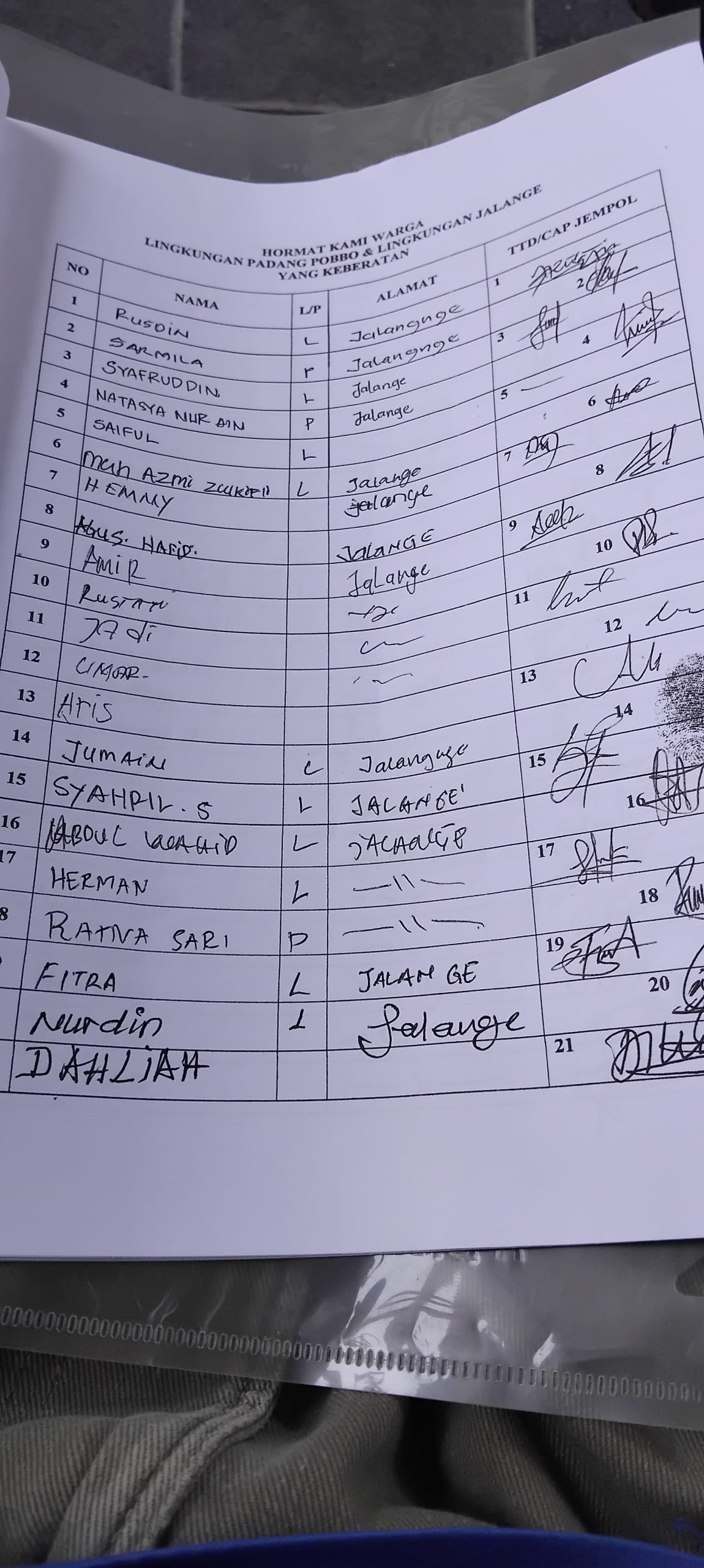 Berikut pernyataan Warga ;