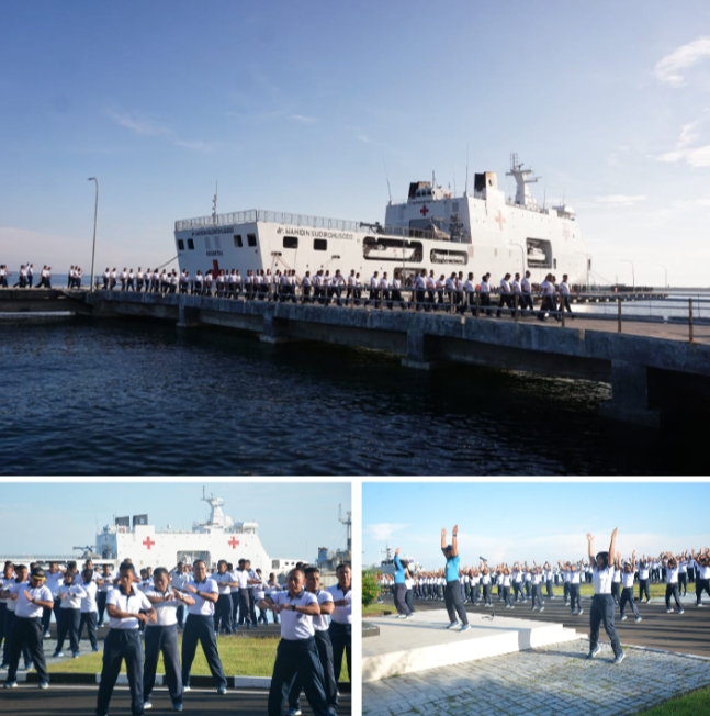 –klivetvindonesia.com–TNI AL, Dispen Kormar Makassar— Prajurit Yonmarhanlan VI Makassar melaksanakan kegiatan olahraga bersama dengan awak Kapal Perang Republik Indonesia (KRI) yang sedang sandar wilayah kerja Lantamal VI bertempat di dermaga layang Mako Lantamal VI Makassar, Jum’at (16/05/2025)