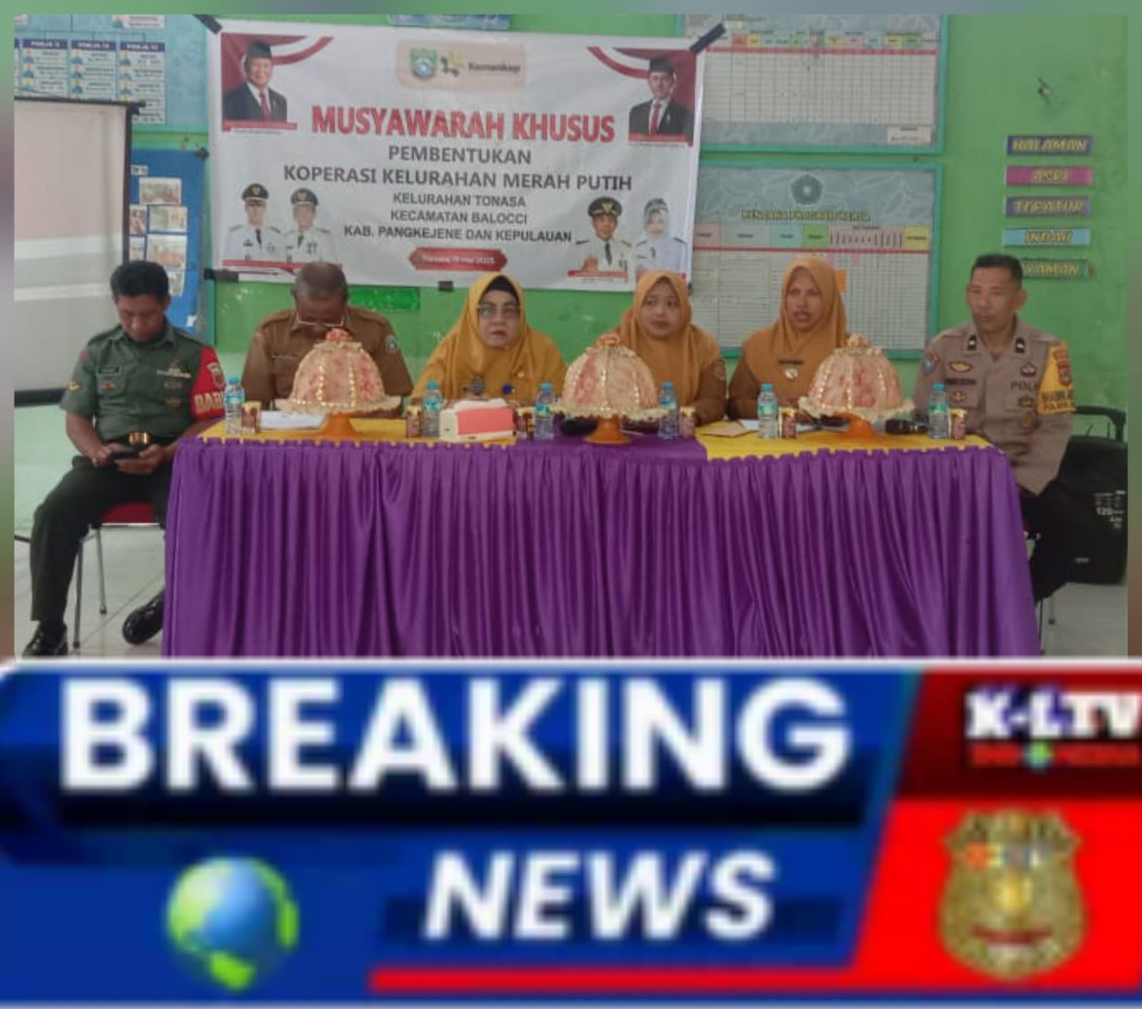 klivetvindonesia.com, Balocci Pangkep, ~ Pada hari Senin 19 Mei 2025, Bertempat di Kantor Kelurahan Tonasa Kecamatan balocci Kabupaten Pangkep, Telah berlangsung kegiatan Musyawarah Kelurahan Khusus (MUSKELSUS) dalam rangka pembentukan Koperasi Kelurahan Merah Putih”.