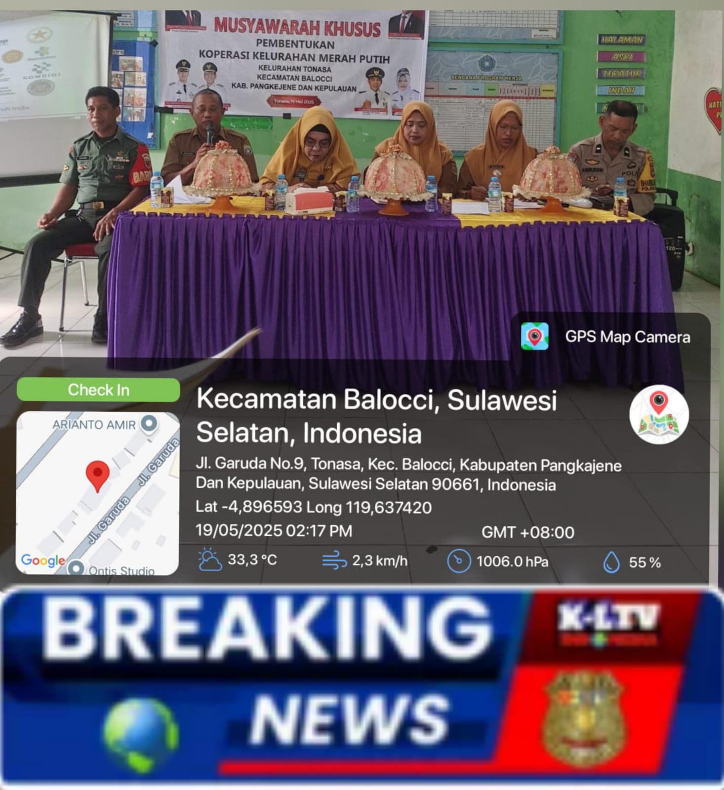 klivetvindonesia.com, Tonasa, Pangkep — Senin, 19 Mei 2025 pukul 13.30 WITA, bertempat di Aula Kantor Kelurahan Tonasa, Kecamatan Balocci, Kabupaten Pangkep, telah dilaksanakan Musyawarah Desa/Kelurahan Khusus dengan agenda utama “Pembentukan Koperasi Desa/Kelurahan Merah Putih”.