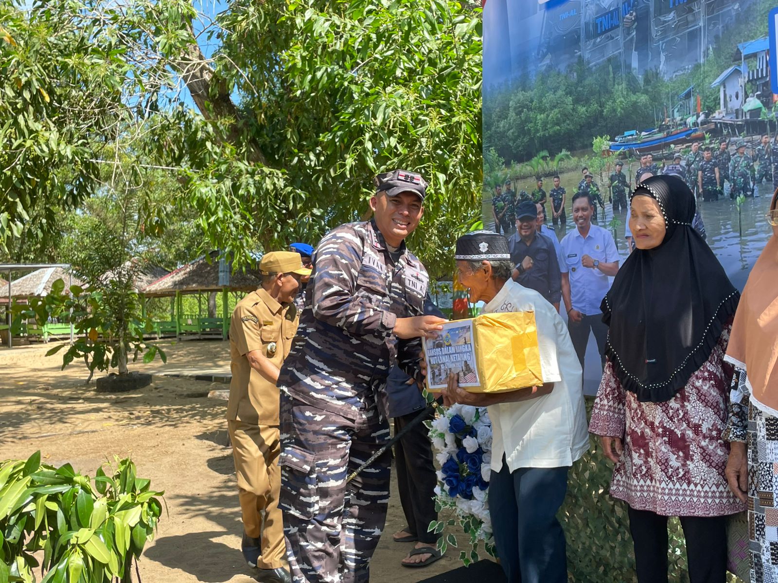 Selain penanaman mangrove kami juga akan menyalurkan bantuan sosial kepada masyarakat kurang mampu dan pemeriksaan kesehatan gratis harapannya dengan bantuan sembako dan pemeriksaan kesehatan gratis ini dapat bermanfaat, dan meringankan beban kebutuhan dan kesehatan keluarga bapak/ibu sekalian. ucapan terimakasih juga kepada para donatur semoga kebaikannya dibalas oleh Allah Saw. Untuk seluruh prajurit lanal ketapang, tetap semangat, kalian adalah kebanggaan keluarga, jalin komunikasi yang baik dengan keluarga walaupun kita jauh dengan keluarga dan saya ucapkan juga terimakasih” untuk ibu-ibu jalasenastri atas dukungan kegiatan yang telah dilaksanakan di lanal ketapang, semoga apa yang telah kita lakukan semua menjadi amal ibadah untuk kita semua.