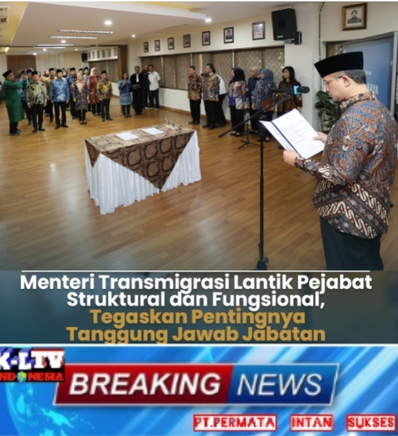 –klivetvindonesia.com-– Menteri Transmigrasi Ifitah Sulaiman Suryanegara memimpin langsung Pelantikan dan Pengambilan Sumpah Jabatan Pejabat Pimpinan Tinggi Pratama, Pejabat Administrator, Pejabat Pengawas, dan Pejabat Fungsional di lingkungan Kementerian Transmigrasi, Selasa (20/5/2025).