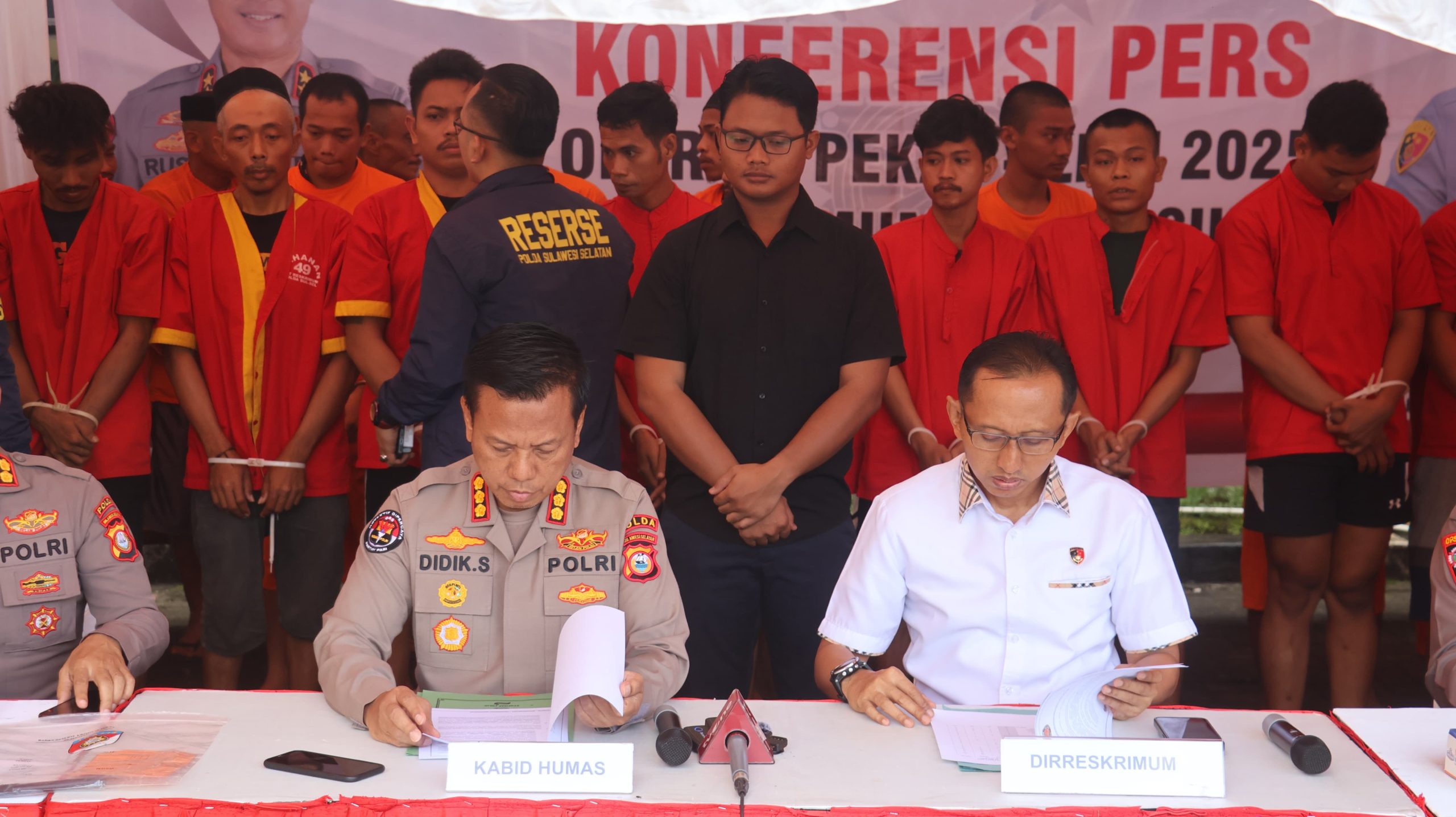 -Klivetvindinesia.com- 21 Mei 2025 — Kepolisian Daerah Sulawesi Selatan (Polda Sulsel) melalui konferensi pers yang dipimpin oleh Kabid Humas Polda Sulsel Kombes Pol Didik Supranoto, S.I.K., M.H. bersama Direktur Reserse Kriminal Umum (Dirkrimum) Kombes Pol Setiadi Sulaksono, S.I.K., M.H., merilis hasil pelaksanaan Operasi Pekat Lipu 2025 yang telah digelar selama 20 hari sejak 3 hingga 20 Mei 2025. Operasi Kepolisian Kewilayahan ini dilaksanakan secara terpadu oleh Polda Sulsel dan seluruh jajaran Polres di wilayah hukum Sulawesi Selatan dalam rangka menciptakan kondisi keamanan dan ketertiban masyarakat (kamtibmas) yang aman dan kondusif.