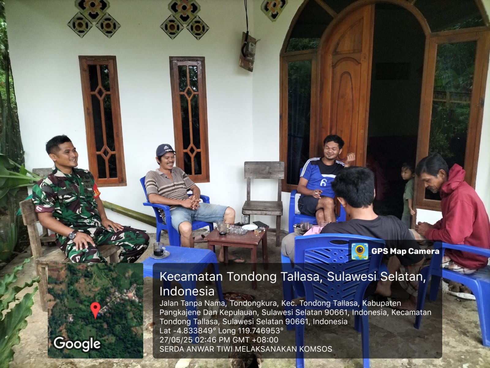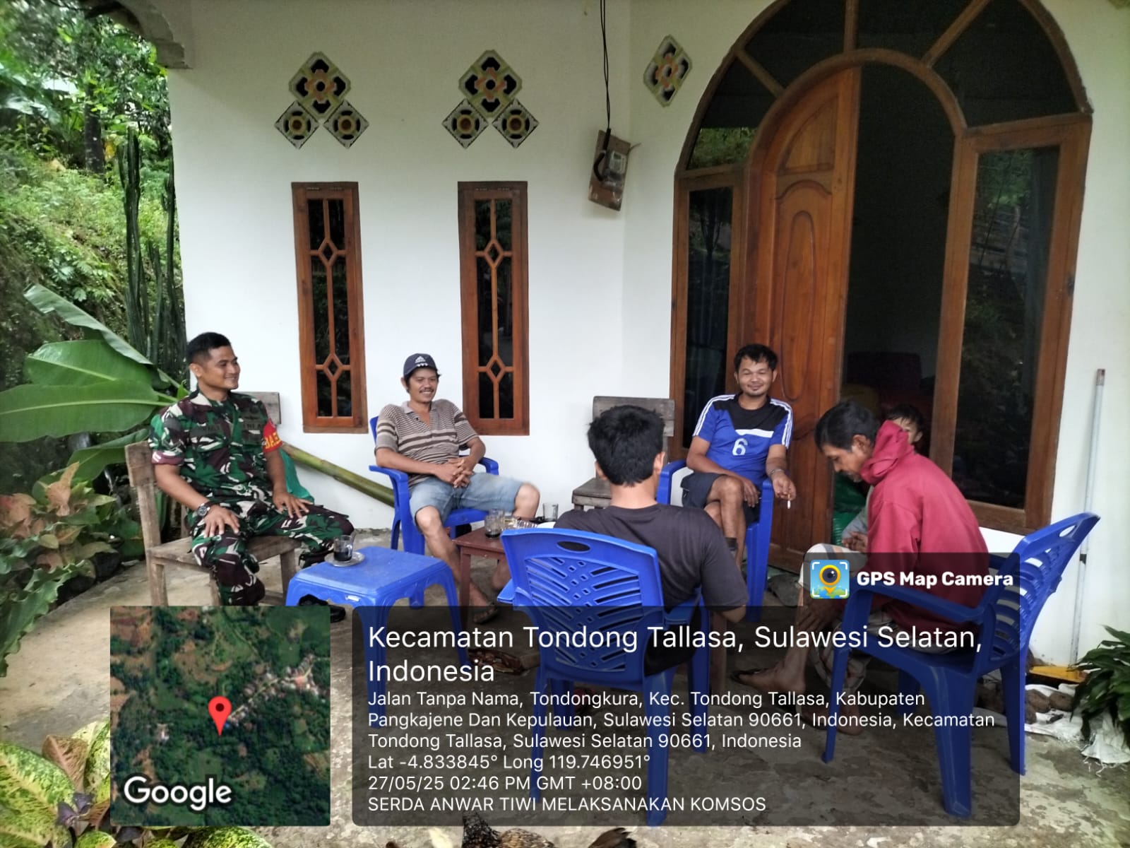klivetvindonesia.com, Pangkep, 27 Mei 2025 – Dalam upaya mempererat hubungan dengan masyarakat sekaligus meningkatkan kewaspadaan sosial, Babinsa Desa Tondongkura, Serda Anwar Tiwi, melaksanakan kegiatan Komunikasi Sosial (Komsos) di kediaman Bapak Muhlis, warga Dusun Ujung Bassi, Desa Tondongkura, Kecamatan Tondong Tallasa, Kabupaten Pangkep, pada Selasa siang pukul 13.00 WITA.