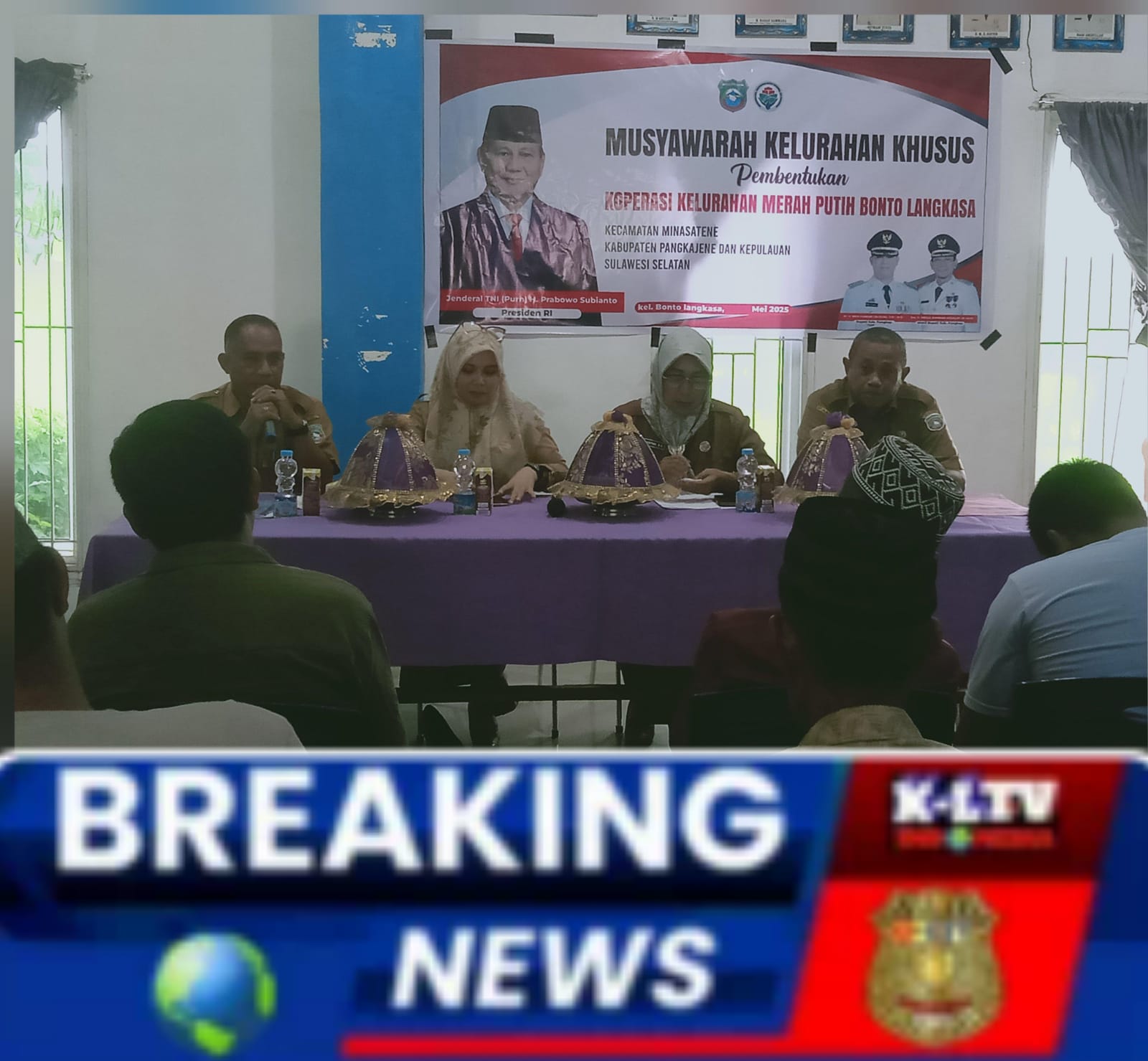 klivetvindonesia.com, Pangkep, selasa 27 Mei 2025 — Upaya pemberdayaan ekonomi masyarakat di tingkat kelurahan kembali diperkuat dengan resmi terbentuknya Koperasi Merah Putih di Kelurahan Bontolangkasa, Kecamatan Minasate’ne, Kabupaten Pangkep. Musyawarah khusus pembentukan koperasi ini digelar pada Selasa pukul 02:00 WITA di Aula Kantor Kelurahan Bontolangkasa