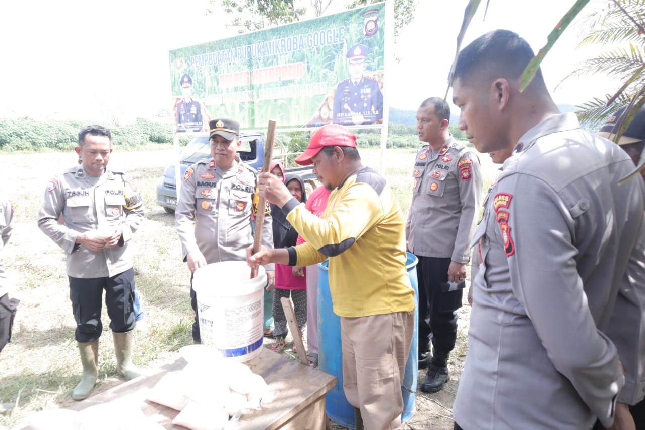 Ketapang – Dalam upaya mendukung peningkatan hasil pertanian khususnya tanaman jagung, Polres Ketapang memberikan pendampingan terkait proses pembuatan dan pengaplikasian pupuk mikroba google (migo) kepada kelompok tani Sepakat Jaya di Kecamatan Tayap Kabupaten Ketapang.