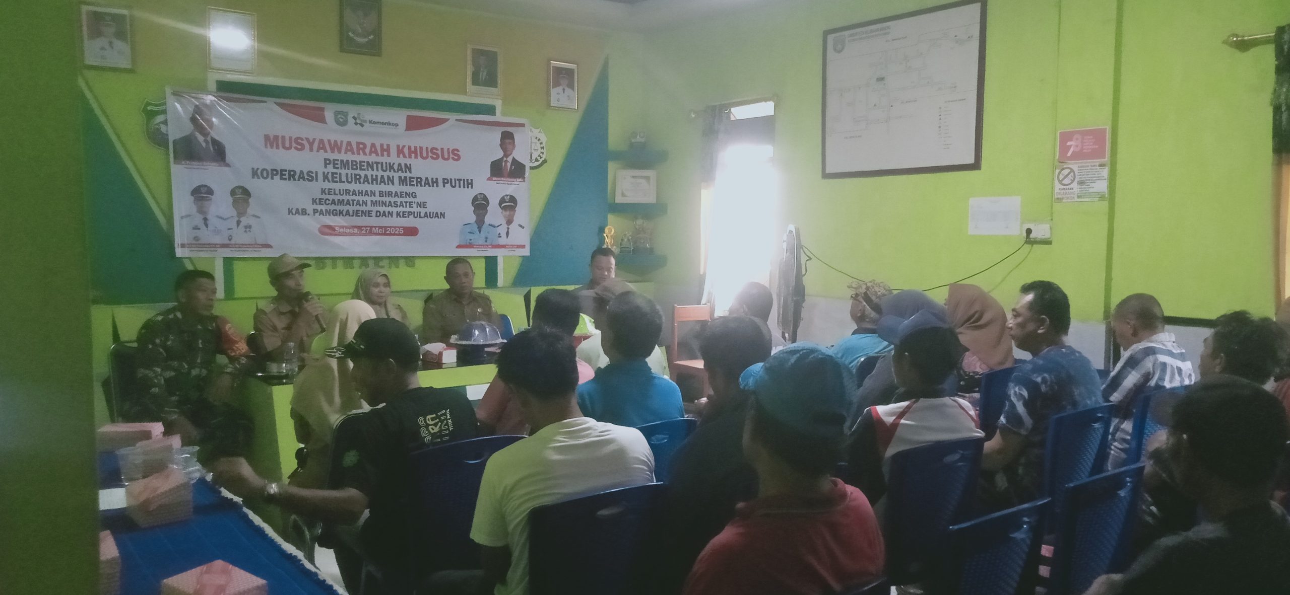 klivetvindonesia.com, Pangkep, 27 Mei 2025 — Upaya pemberdayaan ekonomi masyarakat di tingkat kelurahan kembali diperkuat dengan resmi terbentuknya Koperasi Merah Putih di Kelurahan Biraeng, Kecamatan Minasate’ne, Kabupaten Pangkep. Musyawarah khusus pembentukan koperasi ini digelar pada Selasa pagi pukul 10.00 WITA di Aula Kantor Kelurahan Biraeng.