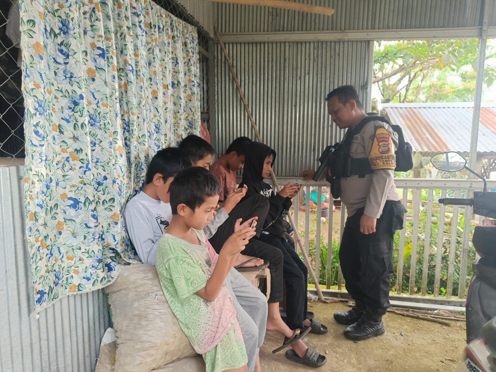 “Adik-adik harus bisa mengatur waktu bermain dan belajar. Handphone boleh digunakan, tapi jangan sampai melupakan kewajiban dan kegiatan positif lainnya,” pesan Aipda Abd. Azis dengan ramah.