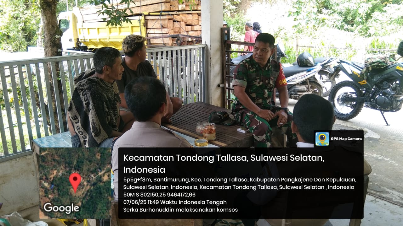 klivetvindonesia.com, Pangkep. Dalam rangka mempererat hubungan antara TNI dan masyarakat, sekaligus menyampaikan pesan-pesan penting terkait ketahanan sosial dan kebersihan lingkungan, Babinsa Desa Bantimurung, Serka Burhanuddin, melaksanakan kegiatan komunikasi sosial (Komsos) di kediaman Bapak Ashari, warga Dusun Bantimurung, Desa Bantimurung, Kecamatan Tondong Tallasa, Kabupaten Pangkep, pada Sabtu pagi (7/6), pukul 10.10 Wita.