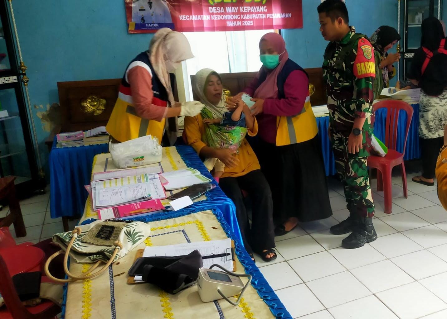 Sama hal nya yang di gelar Posyandu di Desa Way Kepayang Kecamatan Kedondong Kabupaten Pesawaran bersama bidan desa Ibu Widya serta kader Posyandu yang di dampingi Babinsa Koramil 421-01/Kedondong Serda Agung Fauzi pada selasa (10/6/2025)