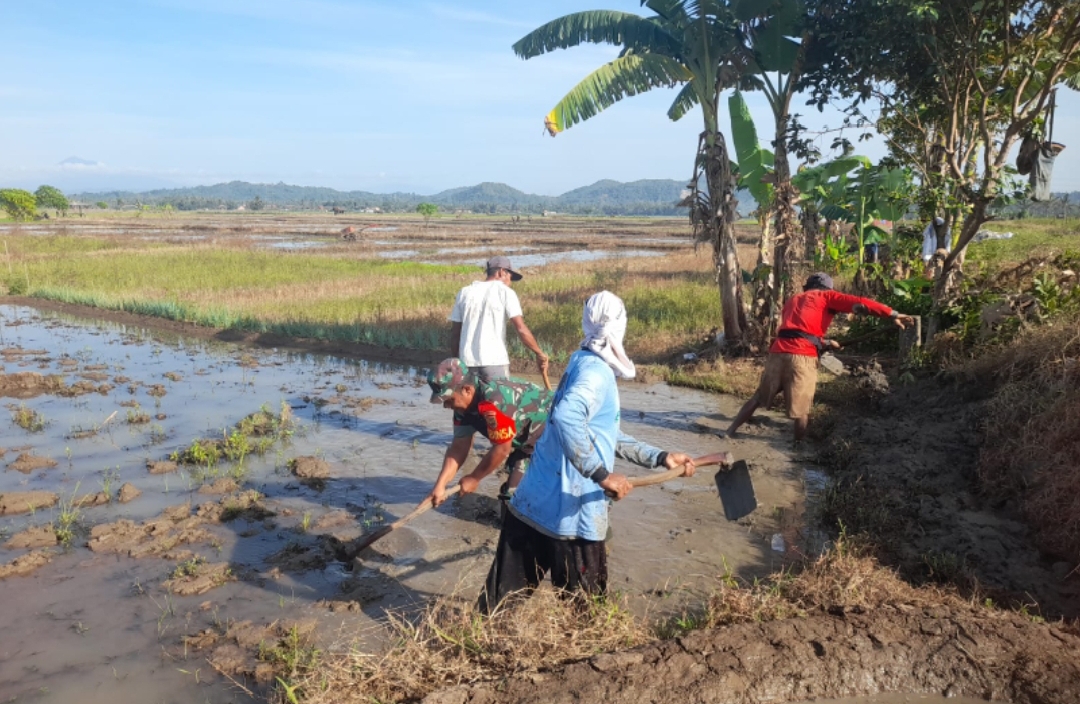 Kopka Erwanto mengatakan, hari ini saya selaku aparat kewilayahan tergerak ikut membantu salah satu petani di wilayah binaan yang sedang mengolah lahan sawah yaitu membuat pematang atau bantalan sisi sawah dan memperbaiki pengaturan selokan,”ungkap Kopka Erwanto