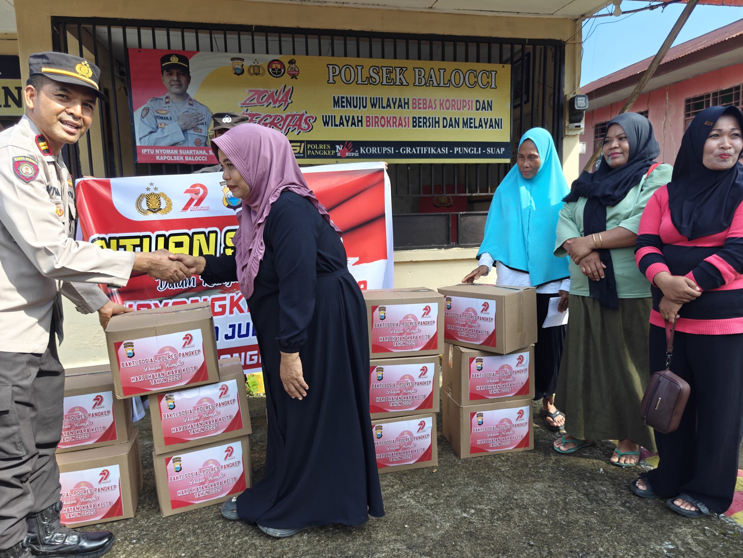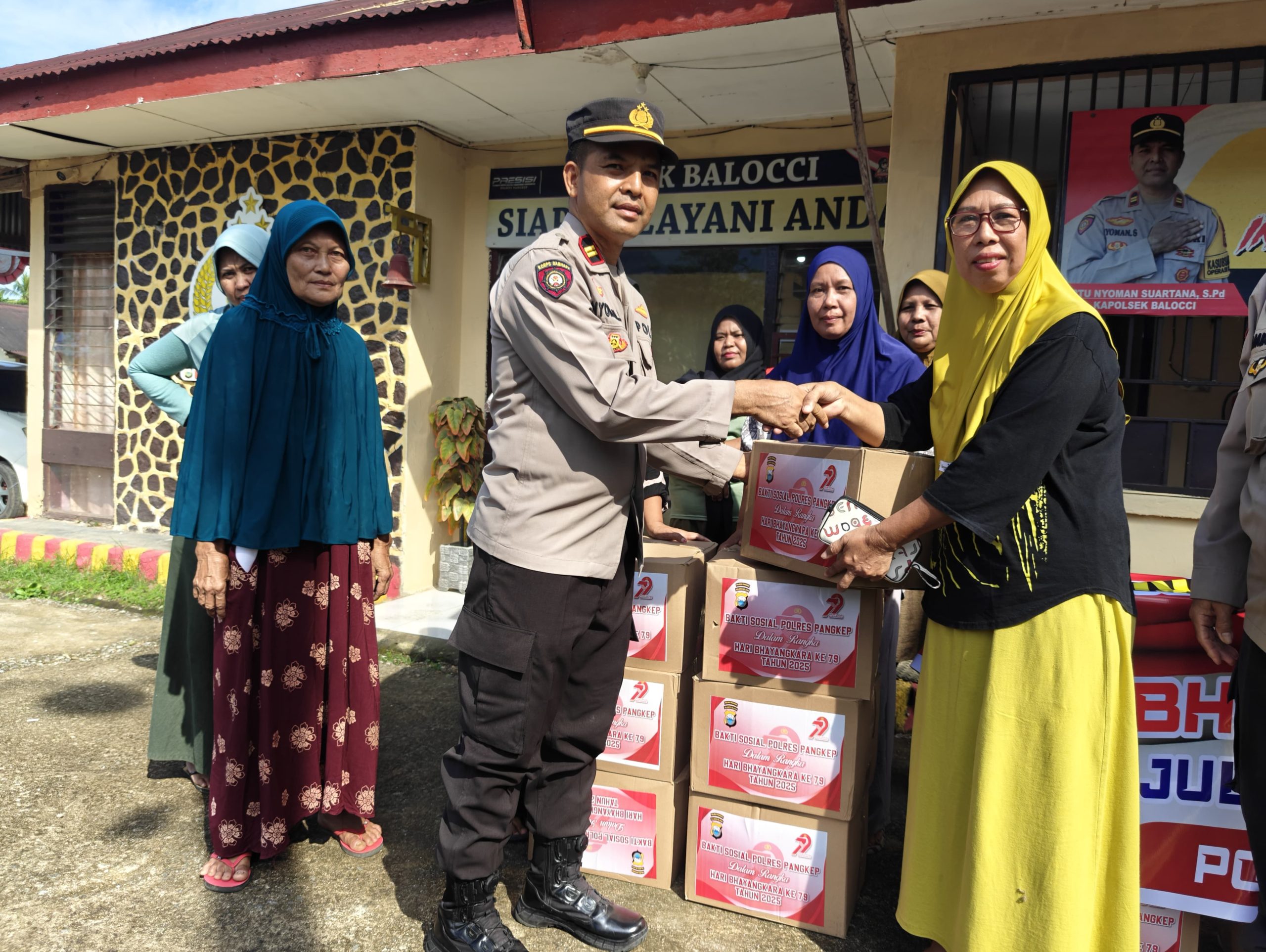 Kegiatan ini dipimpin langsung oleh Kapolsek Balocci IPTU Nyoman Suartana, S.Pd, yang turut hadir bersama jajaran anggota Polsek untuk menyalurkan bantuan kepada warga yang membutuhkan.