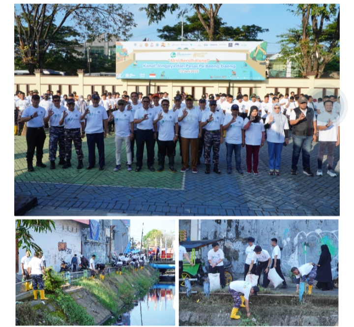 –klivetvindonesia.com– TNI AL, Dispen Kormar (Makassar) – Dalam rangka memperingati Hari Lingkungan Hidup Sedunia, prajurit Yonmarhanlan VI Makassar melaksanakan aksi bersih-bersih kanal dan pasar sebagai bentuk kepedulian terhadap lingkungan serta untuk mempererat hubungan sosial antara TNI AL dan masyarakat. Kegiatan ini dilaksanakan di area Pasar Pabaeng-Baeng, Kota Makassar, Jumat (13/06/2025).