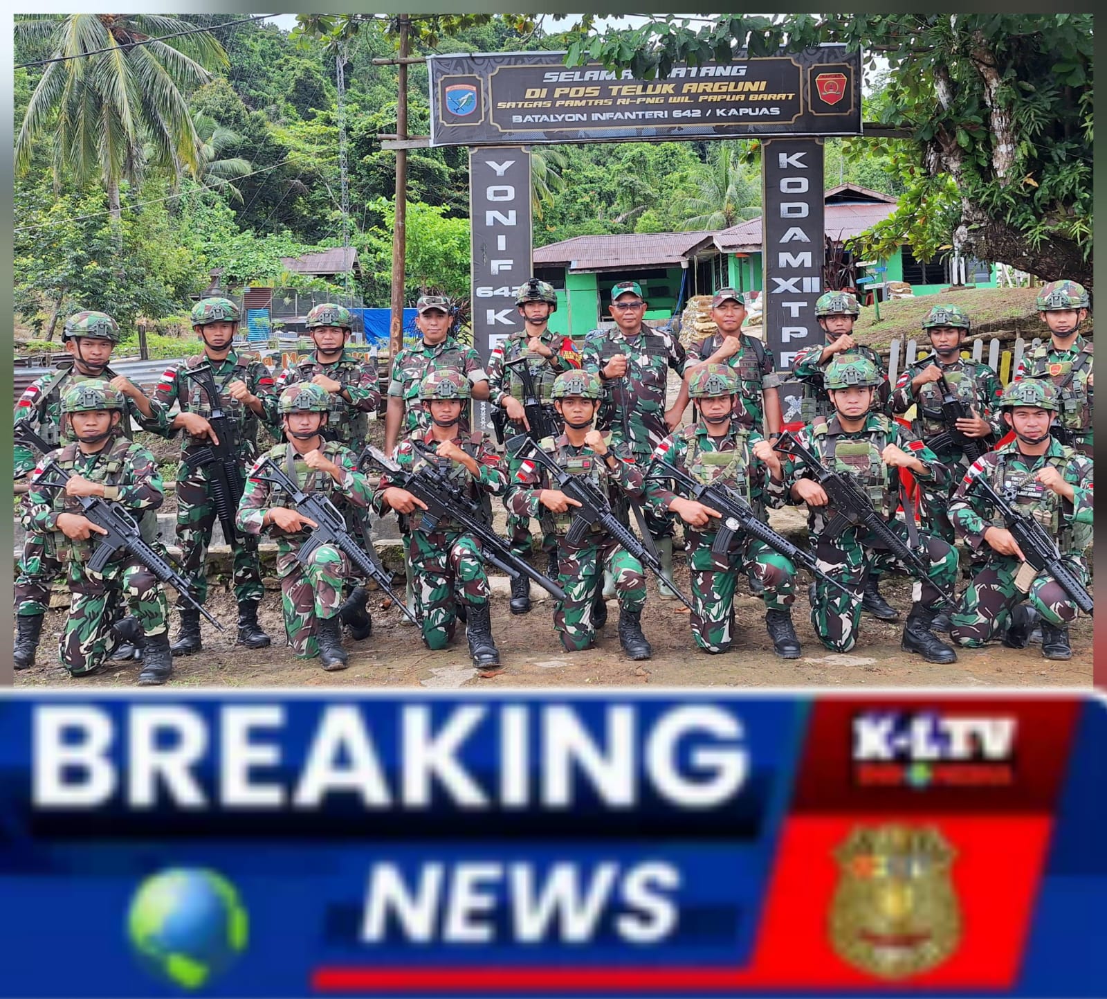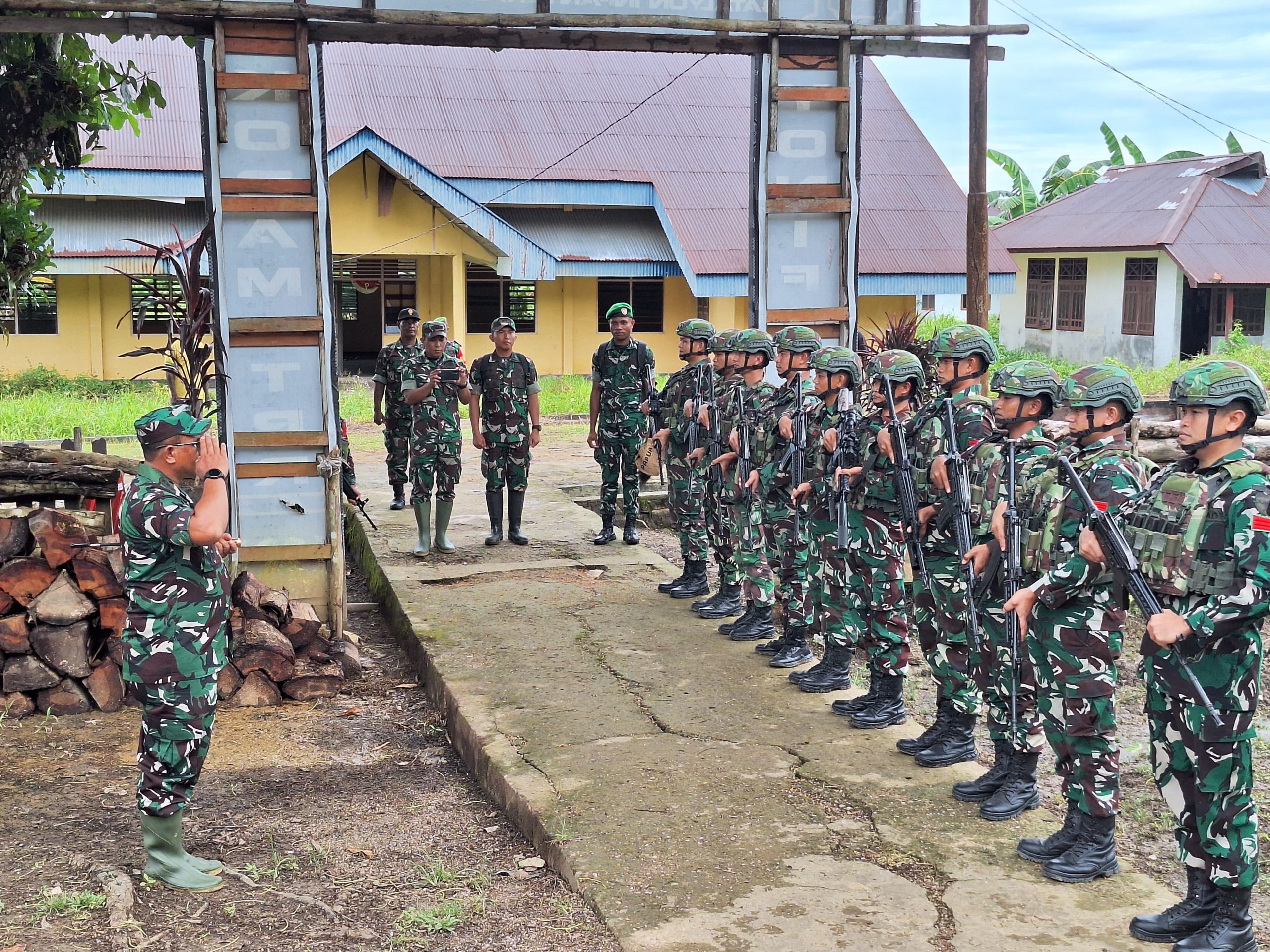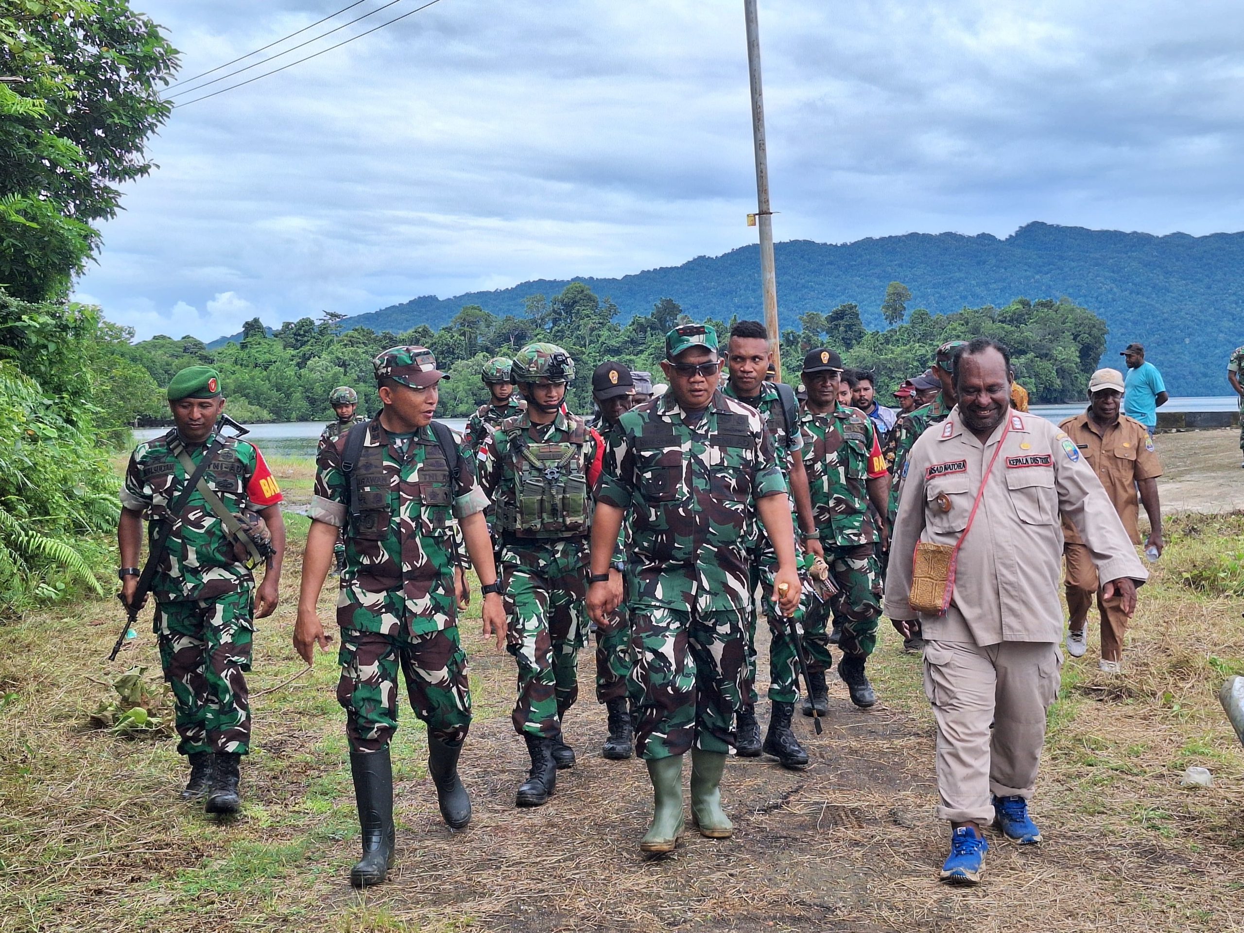 TELUK ARGUNI -KLTV INDONESIA klivetvindonesia.com, Teluk Arguni – Komandan Korem 182/JO Kolonel Inf Irwan Budiana selaku Dankolakops menyambangi pos Teluk Arguni Satgas Yonif 642/Kps yang berada di bawah naungan Kolakops Korem 182/JO. (16/6/2025)