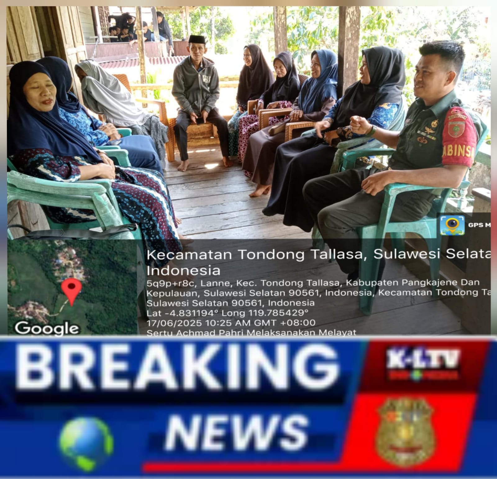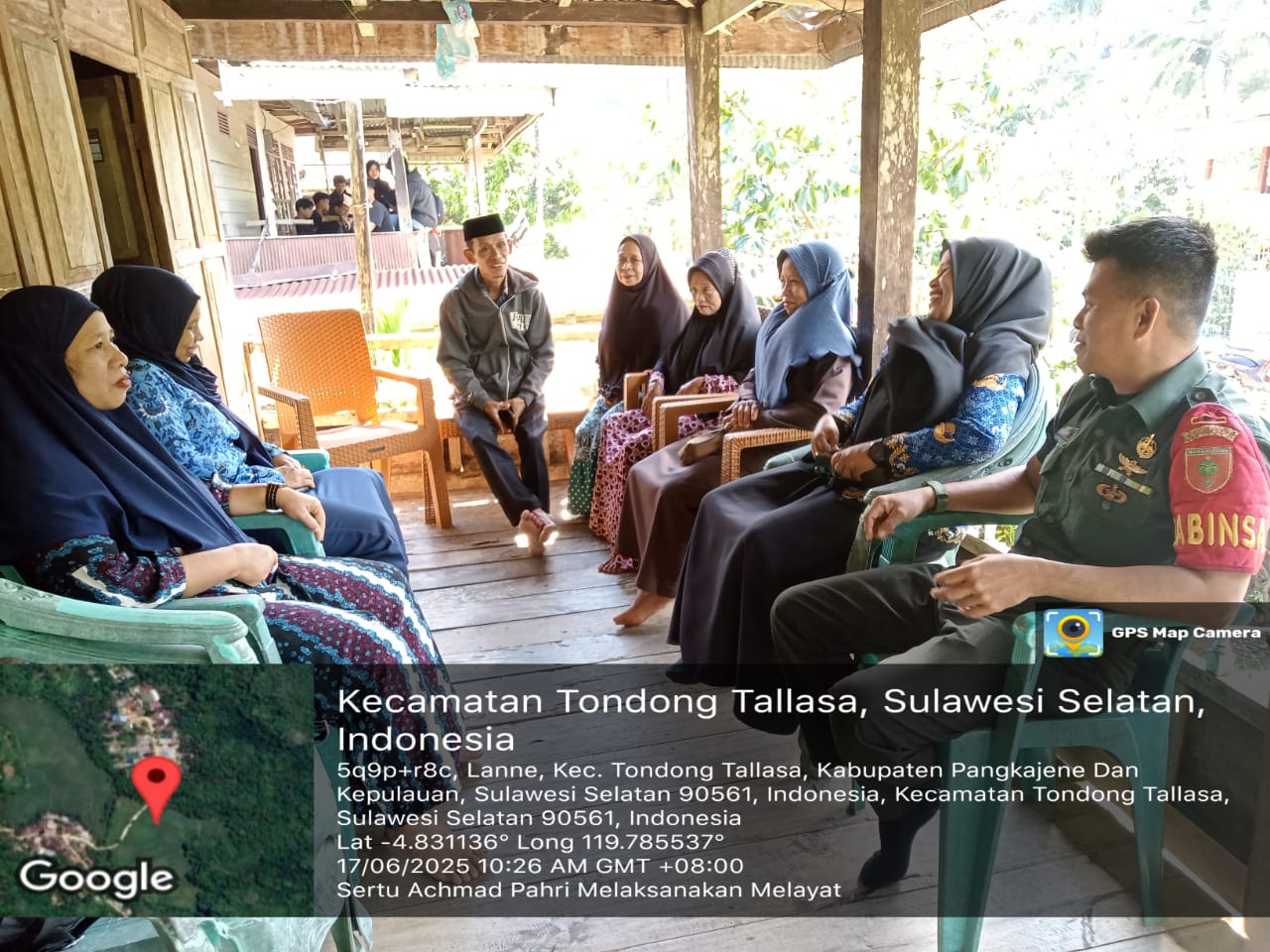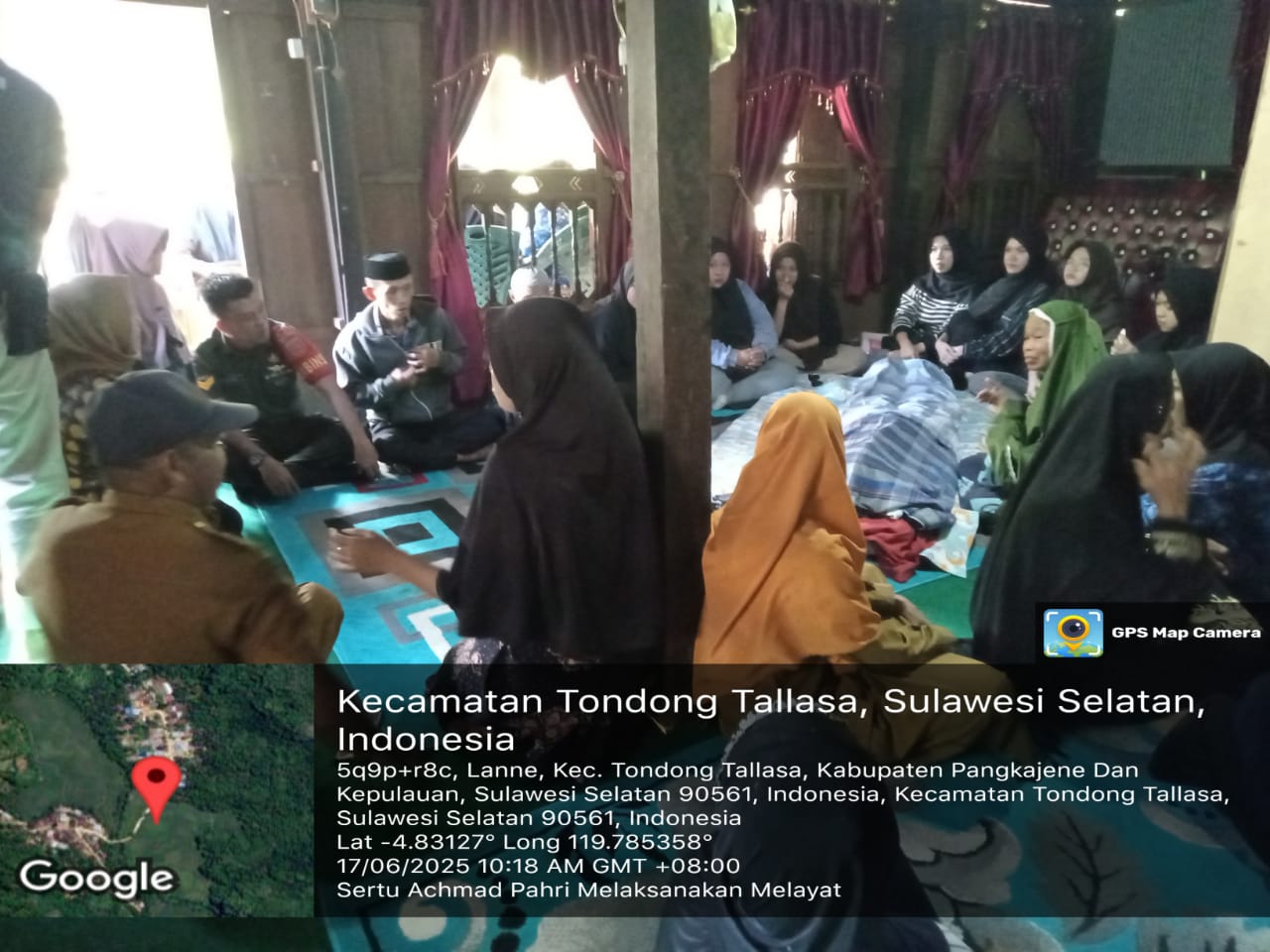 klivetvindonesia.com, Pangkep, Sebagai bentuk nyata kepedulian terhadap warga binaannya, Babinsa Desa Lanne, Sertu Achmad Pahri, hadir melayat di rumah duka salah satu warga di Kampung Maccini, Dusun Mancini, Desa Lanne, Kecamatan Tondong Tallasa, Kabupaten Pangkep, pada Selasa, 17 Juni 2025, sekitar pukul 09.34 WITA.