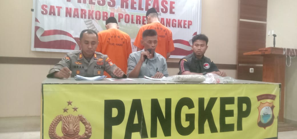 Atas perbuatannya, kedua tersangka dikenakan Pasal 114 dan Pasal 112 Undang-Undang Nomor 35 Tahun 2009 tentang Narkotika.