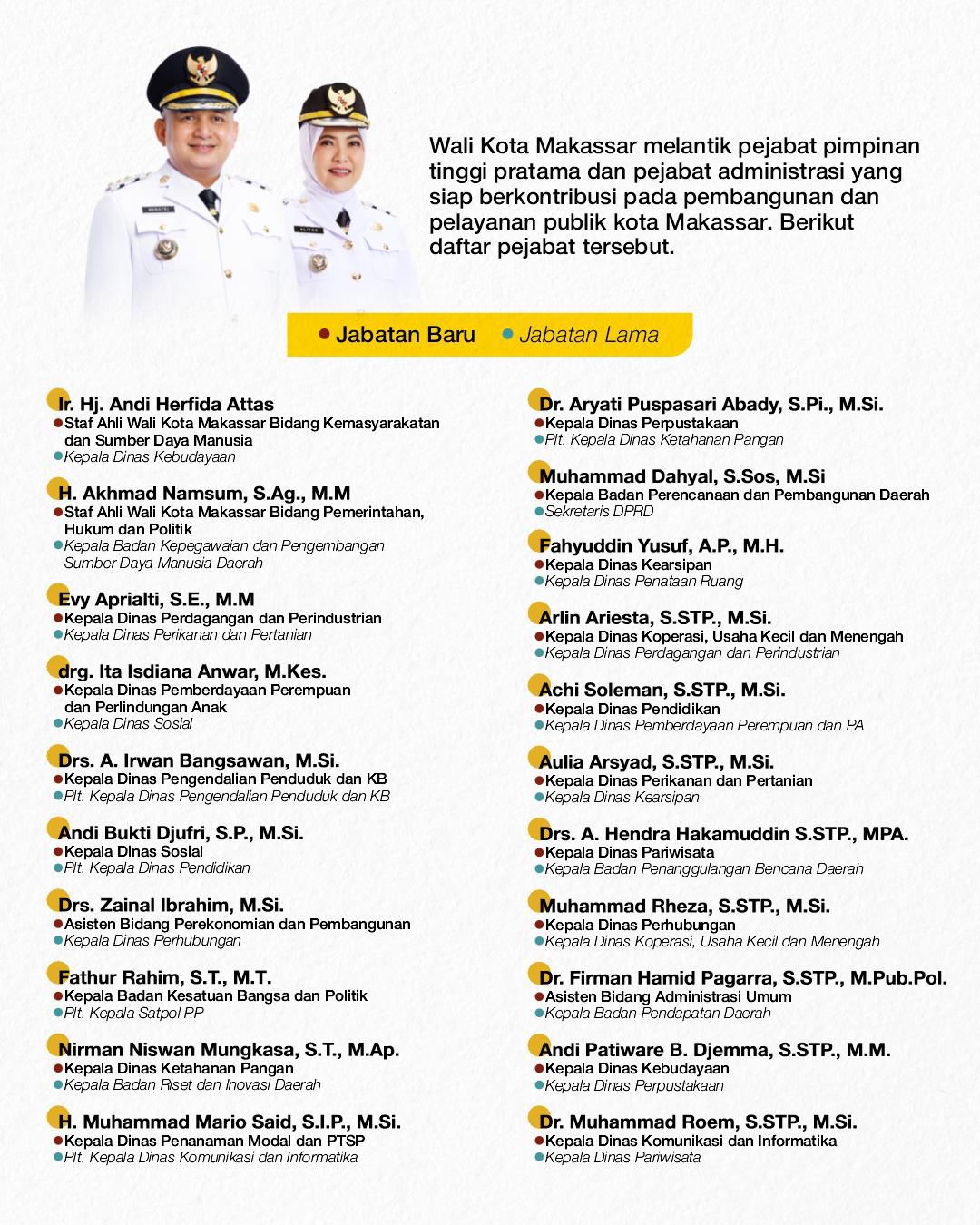 Berikut Nama 46 pejabat baru di lingkungan Pemerintah Kota Makassar