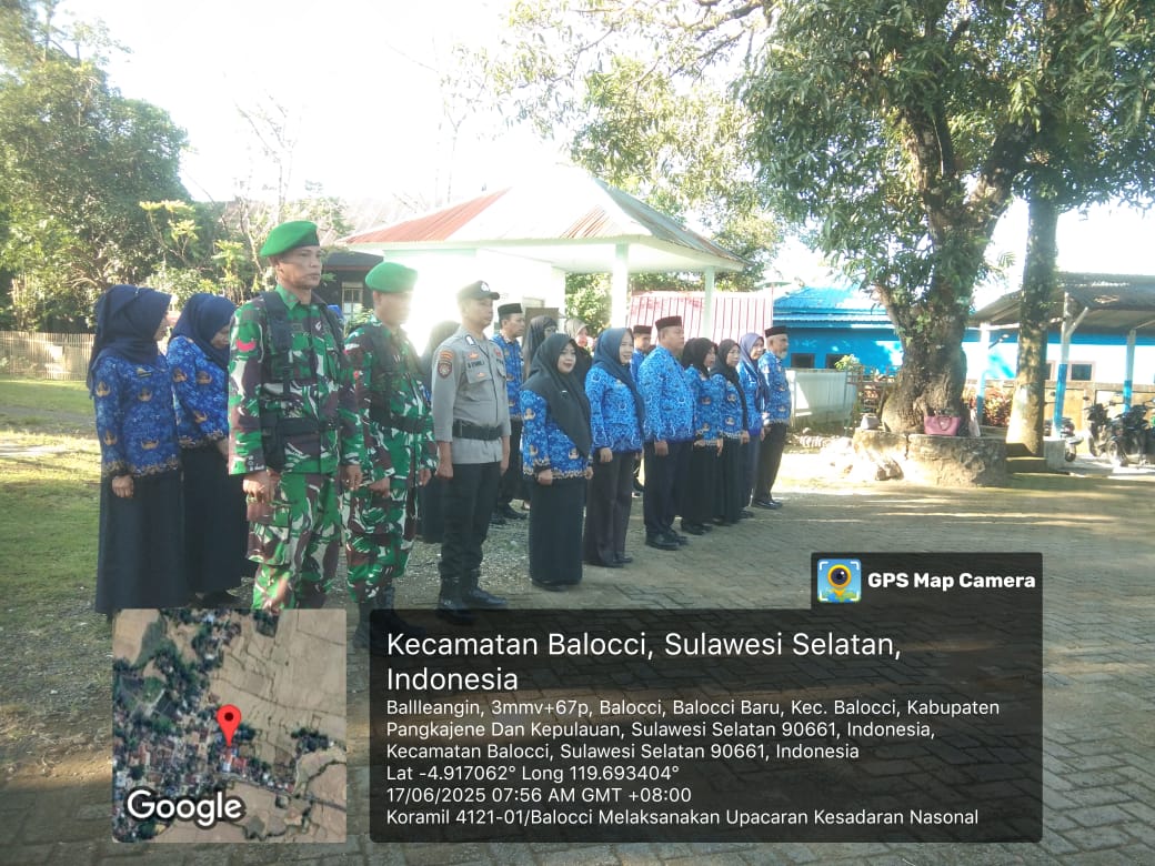 klivetvindonesia.com, Balocci, 17 Juni 2025 — Dalam rangka memperingati Hari Kesadaran Nasional yang diperingati setiap tanggal 17 setiap bulannya, Koramil 1421-01/Balocci bersama Pemerintah Kecamatan Balocci menggelar upacara bendera pada hari Selasa, 17 Juni 2025, pukul 07.30 WITA, bertempat di lapangan apel Kantor Camat Balocci, Kelurahan Balleangin, Kecamatan Balocci, Kabupaten Pangkep.