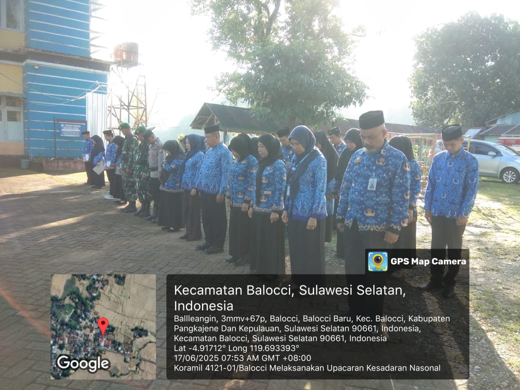 Camat Balocci dalam amanatnya menegaskan pentingnya upacara Hari Kesadaran Nasional sebagai penguat karakter ASN dan seluruh elemen masyarakat, serta sebagai pengingat akan tugas mulia dalam melayani publik.