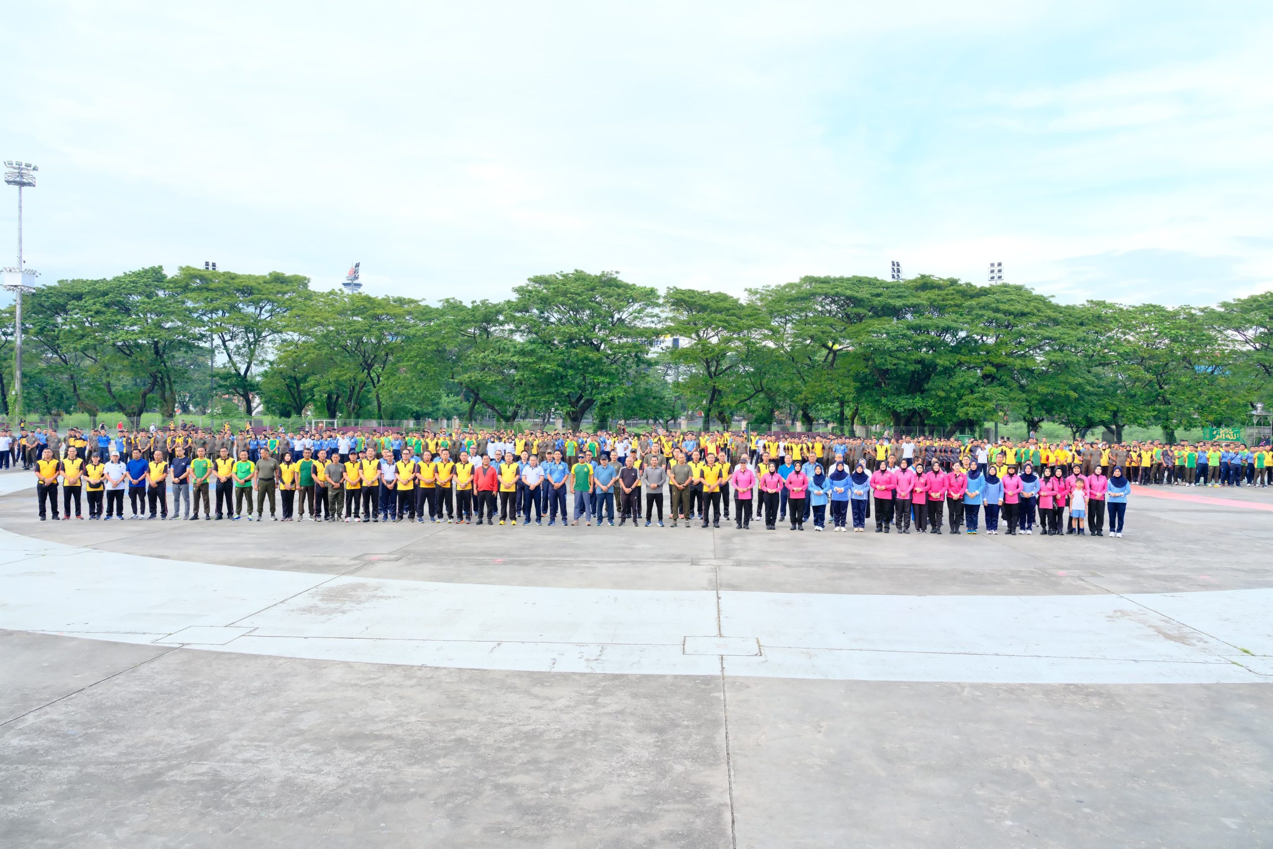 “Dengan olahraga bersama ini, tubuh kita menjadi sehat, dan kesehatan itu menjadi modal produktivitas dalam bekerja,” ujar Irjen Rusdi Hartono.
