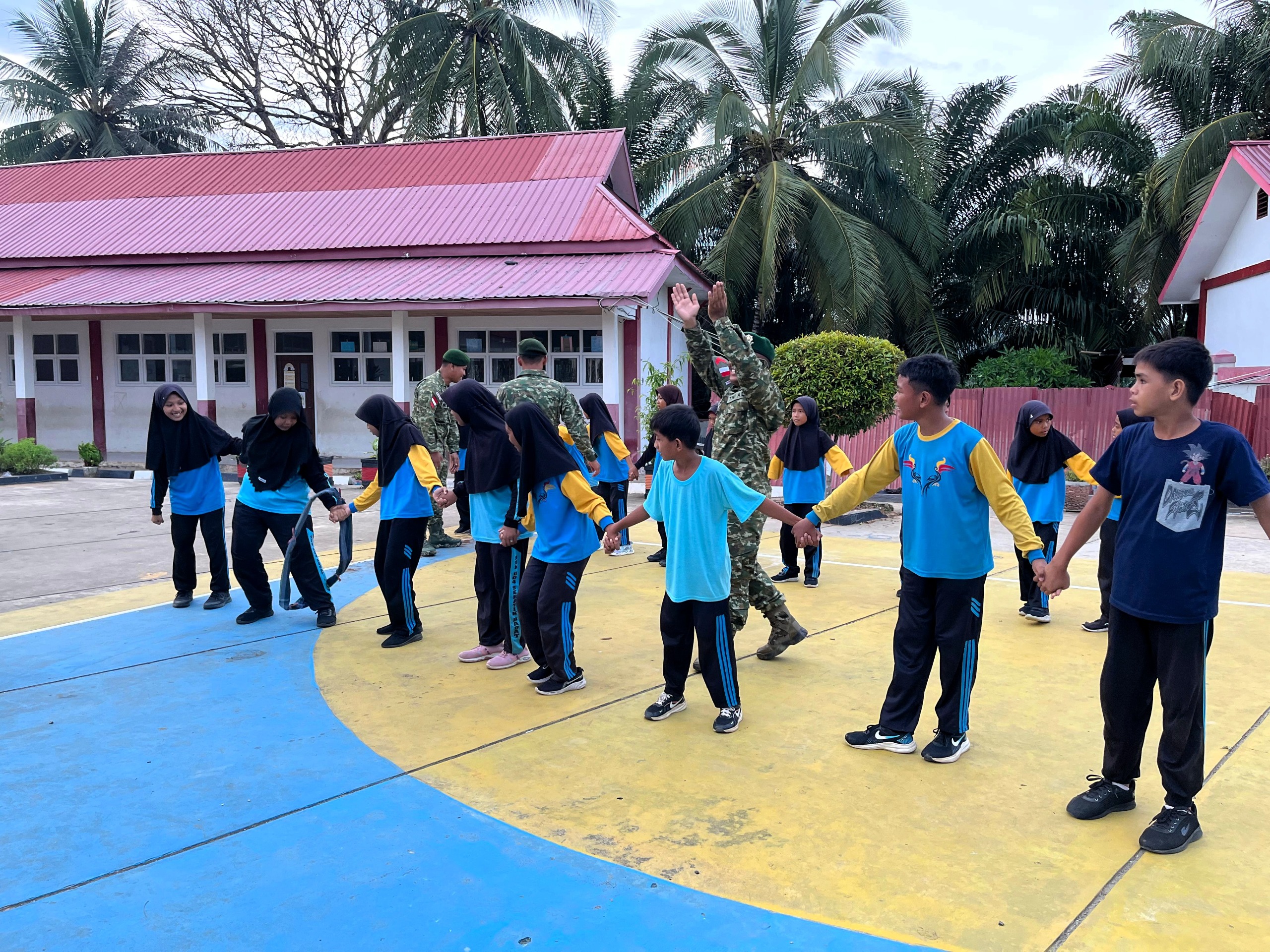 Rangkaian kegiatan yang berlangsung penuh semangat ini tidak hanya berlangsung di dalam kelas. Personel Satgas turut mengajak para siswa mengikuti berbagai kegiatan positif seperti pelatihan baris-berbaris (PBB), permainan edukatif yang membangun kerja sama tim, hingga penyampaian nilai-nilai Pancasila secara interaktif dan menyenangkan.