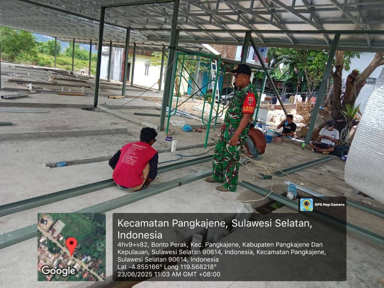 klivetvindonesia.com, Pangkep – Dalam rangka mendukung peningkatan pelayanan kesehatan masyarakat, khususnya dalam hal pemenuhan gizi, Koptu Sujarman selaku Bintara Pembina Desa (Babinsa) Kelurahan Bonto Perak Kodim 1421/Pangkep aktif melakukan pemantauan terhadap pembangunan Unit SPPG (Satuan Pelayanan Pemenuhan Gizi) yang berlokasi di Jalan Sultan Hasanuddin, Kelurahan Bonto Perak, Kecamatan Pangkajene, Kabupaten Pangkep.