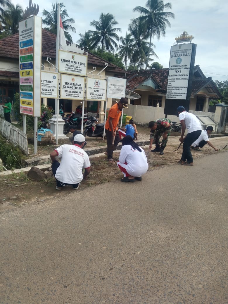 Dalam kegiatan Karya Bhakti tersebut difokuskan membersihkan rumput liar yang ada di halaman kantor desa serta area samping kantor.