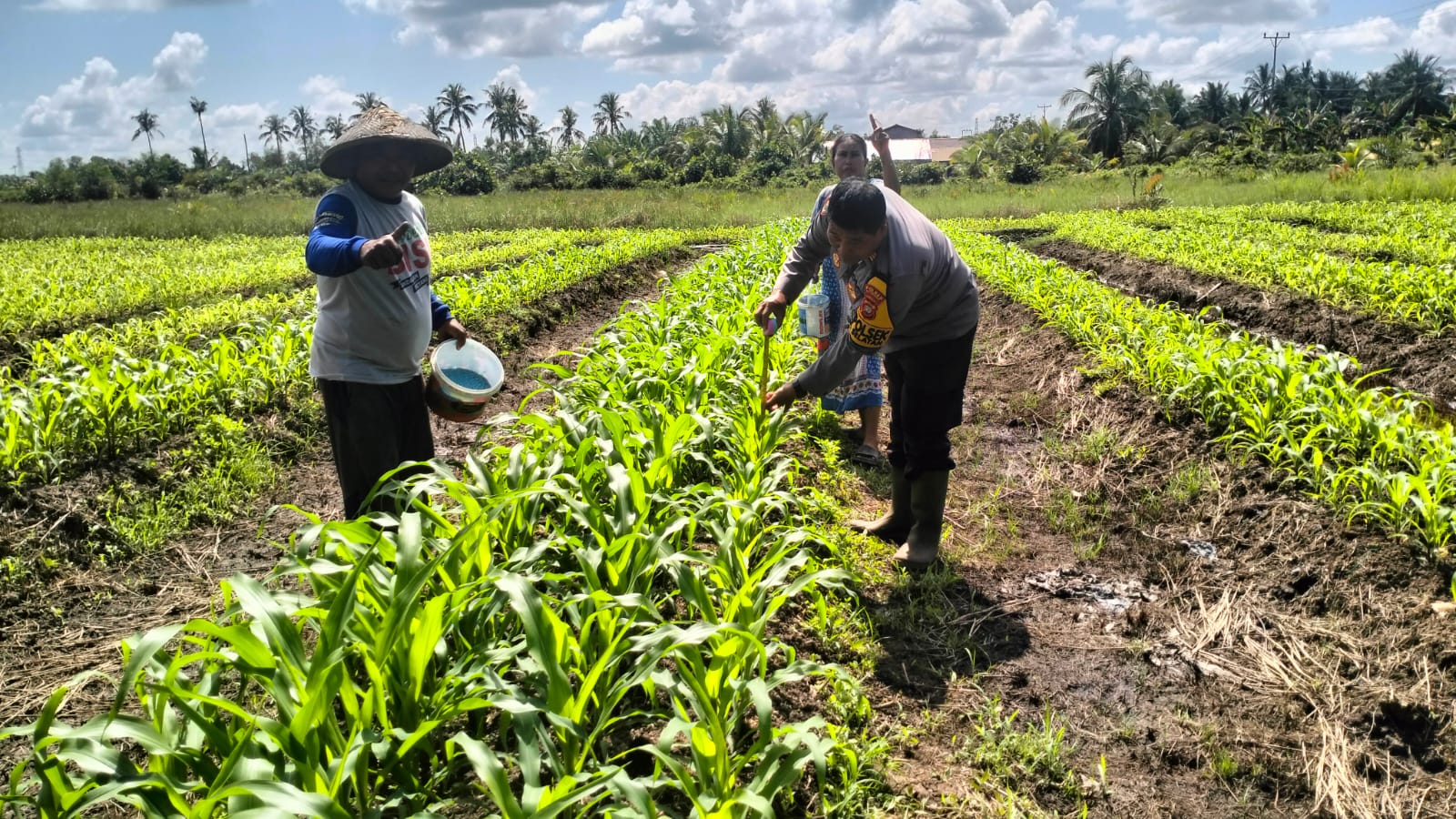 klivetvindonesia.com., Ketapang, 24 Juni 2025 — Kapolsek Matan Hilir Selatan, AKP Helwani, bersama personel Bintara Penggerak, melakukan peninjauan langsung terhadap perkembangan tanaman jagung hibrida milik Kelompok Tani (Poktan) Gaya Baru yang berlokasi di Desa Sungai Pelang, Kecamatan Matan Hilir Selatan, Kabupaten Ketapang.