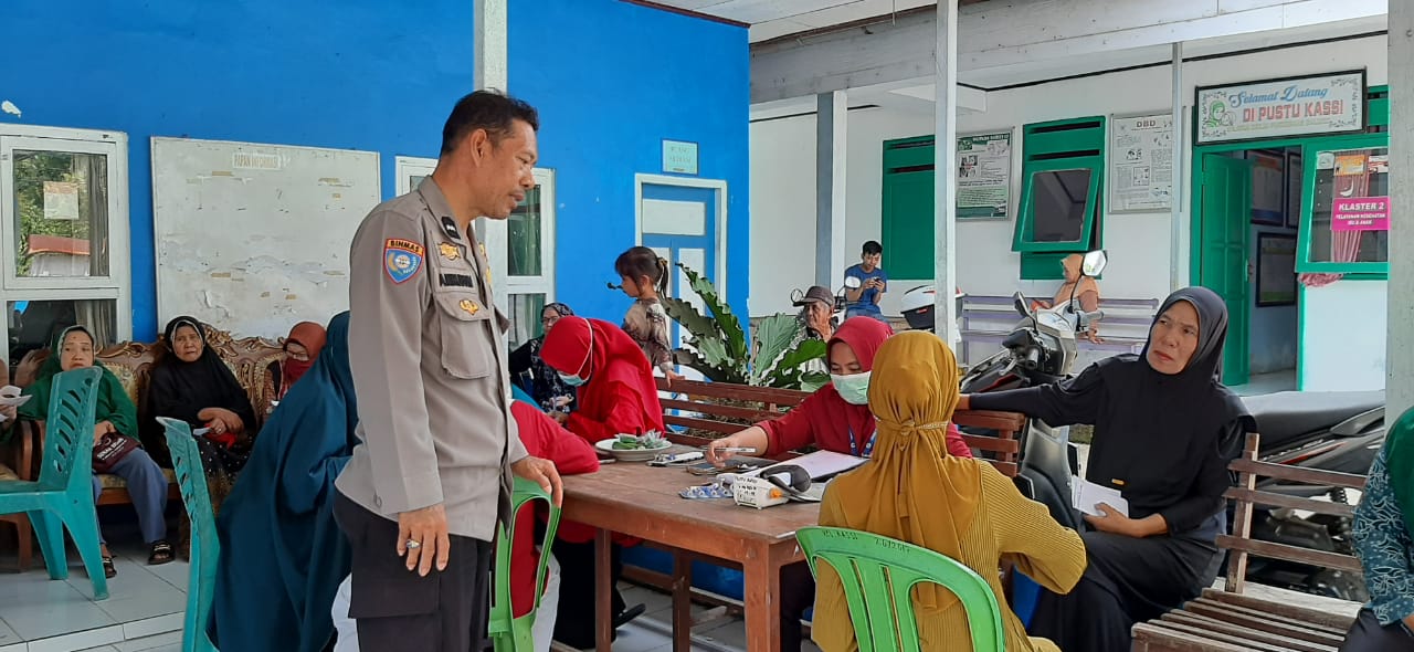 klivetvindonesia.com, Balocci Pangkep, ~ Pada hari Kamis 26 Juni 2025, Bhabinkamtibmas Kelurahan Kassi Polsek balocci Polres Pangkep Aipda Amiruddin terlibat aktif dalam mendampingi kegiatan layanan pemeriksaan kesehatan gratis (CKG) yang diadakan oleh tim medis dari PKM Puskesmas Balocci Kecamatan Balocci Kab.Pangkep.