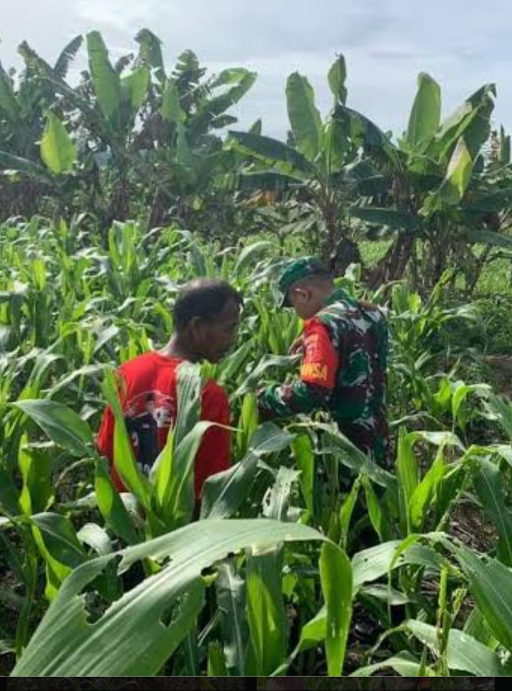 Sertu Sugianto menjelaskan, pemantauan ini kami lakukan sebagai bentuk dukungan program pemerintah dibidang swasembada pangan maka, kami hadir mendampingi salah salah satu petani mengontrol tanaman jagung jika ada kendala/penyakit sesegera mungkin dilakukan pencegahan,”terangnya