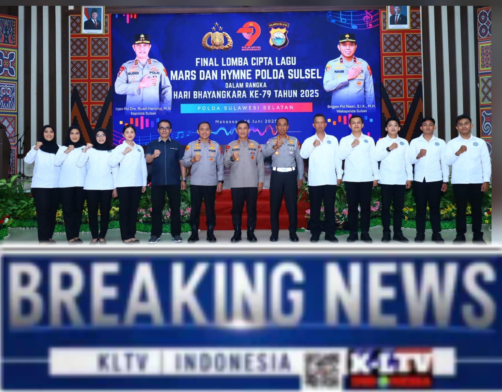 klivetvindonesia.com, Polda sulawisi Dalam rangka menyambut Hari Bhayangkara Ke-79 Tahun 2025, Polda Sulawesi Selatan menggelar Final Perlombaan Cipta Lagu Mars dan Hymne di Aula Mappaoddang Mapolda Sulsel, Kamis (26/06/25). Kegiatan ini dihadiri langsung oleh Kapolda Sulawesi Selatan, Irjen Pol. Drs. Rusdi Hartono, M.Si., sebagai bentuk apresiasi atas kreativitas dan dedikasi personel Polda Sulsel.
