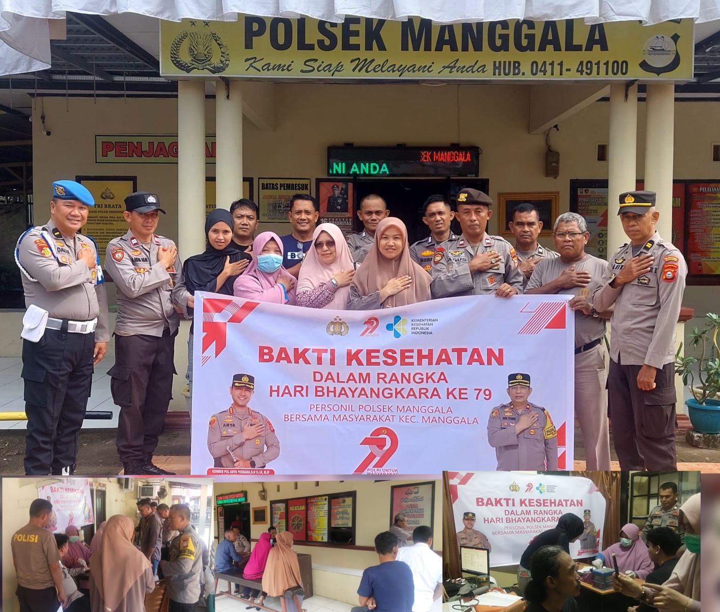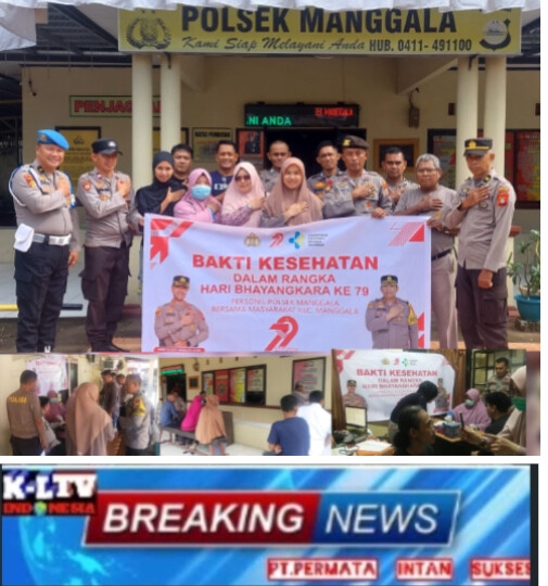 Dalam rangka memperingati Hari Bhayangkara ke-79, Kepolisian Sektor Manggala Polrestabes Makassar menggelar kegiatan bakti kesehatan yang melibatkan masyarakat, Kamis (26/6/2025). Kegiatan ini berlangsung di halaman Mapolsek Manggala, Jalan Lasuloro Raya, Kelurahan Manggala, Kecamatan Manggala, dan bekerja sama dengan tenaga kesehatan dari Puskesmas Antang.