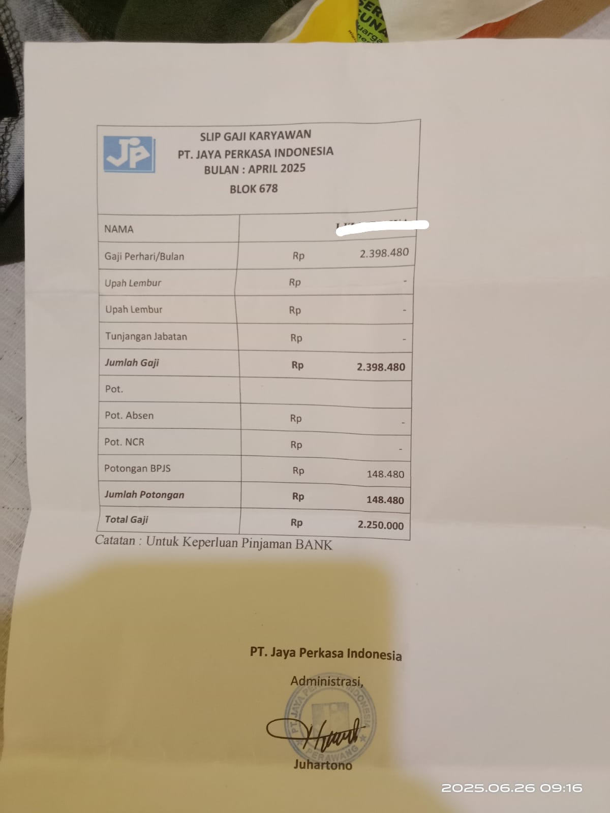 Harapan saya sebagai pekerja meminta perhatian sekaligus membayarkan gaji saya bulan mei dan Juni 2025 sama sekali belum saya terima padahal sy sdh bekerja akibat pemotongan yang terlalu besar dan perjanjian kerja bersama tidak tau saya sistem aturannya.tentu kita minta kebijakan pimpinan perusahaan PT JPI  agar masalah ini bisa di mediasi tanpa ada yang dirugikan.tegas LZ sebagai pekerja.