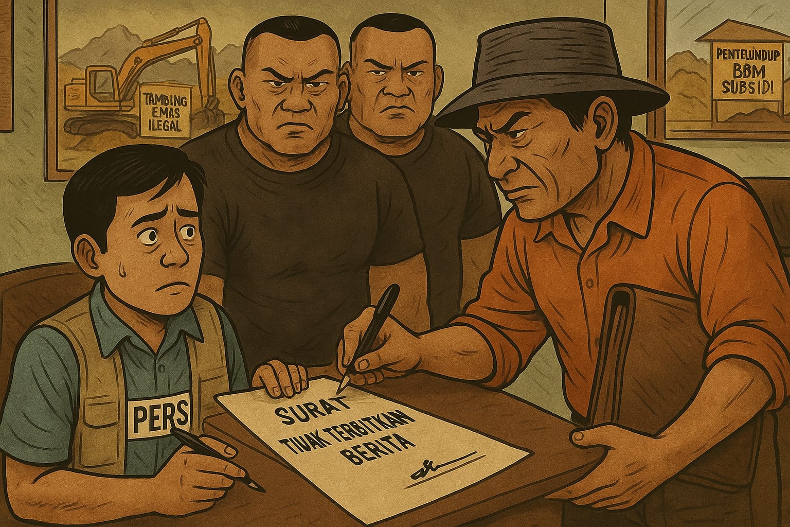 Klivetvindonesia.com.Jakarta, 29 Juni 2025 Kasus intimidasi terhadap insan pers kembali mencederai demokrasi dan kebebasan berekspresi di Indonesia. Kali ini, dua wartawan media online mengalami intimidasi serius di Desa Sei Ayak Dua, Kecamatan Belitang Hilir, Kabupaten Sekadau, Kalimantan Barat, pada 27 Juni 2025. Kasus ini diduga kuat berkaitan dengan aktivitas pertambangan emas ilegal (PETI) dan penyalahgunaan bahan bakar minyak (BBM) bersubsidi jenis solar.