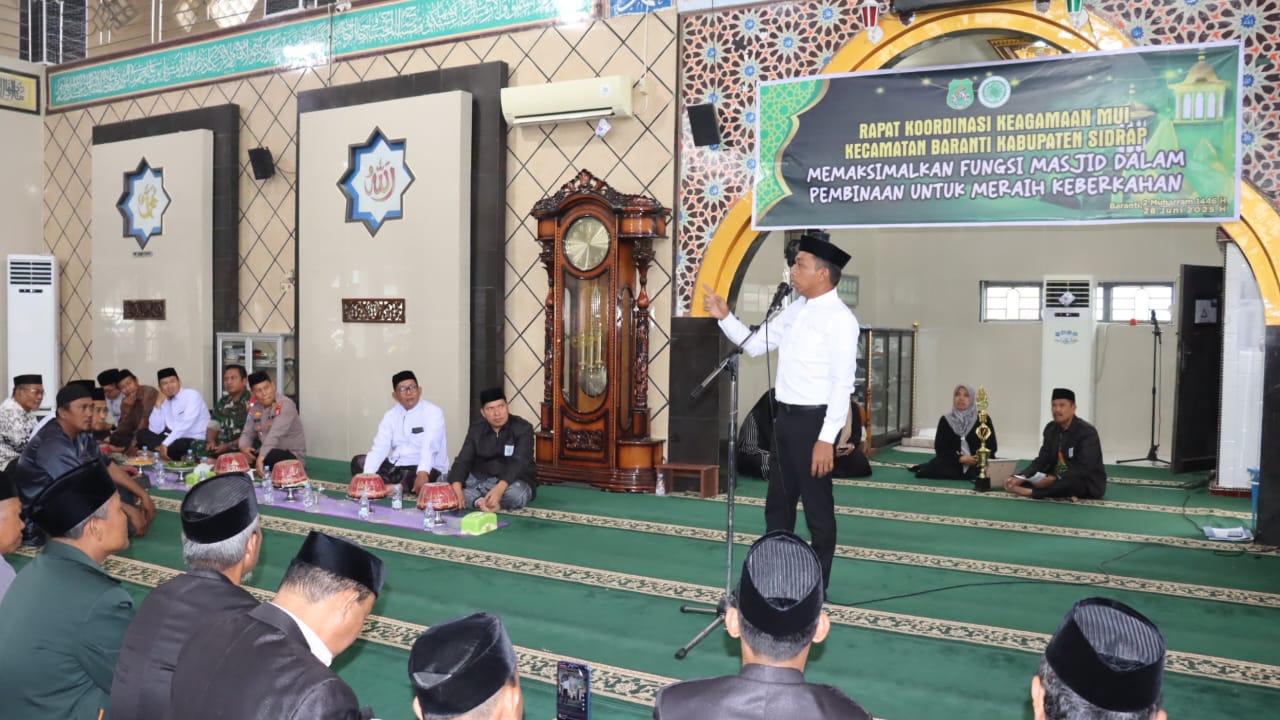 klivetvindonesia.com–   Bupati Sidrap, H. Syaharuddin Alrif, menghadiri Rapat Koordinasi Keagamaan Majelis Ulama Indonesia (MUI) Kecamatan Baranti di Masjid Nurtarbiyah, Sabtu, 28 Juni 2025
