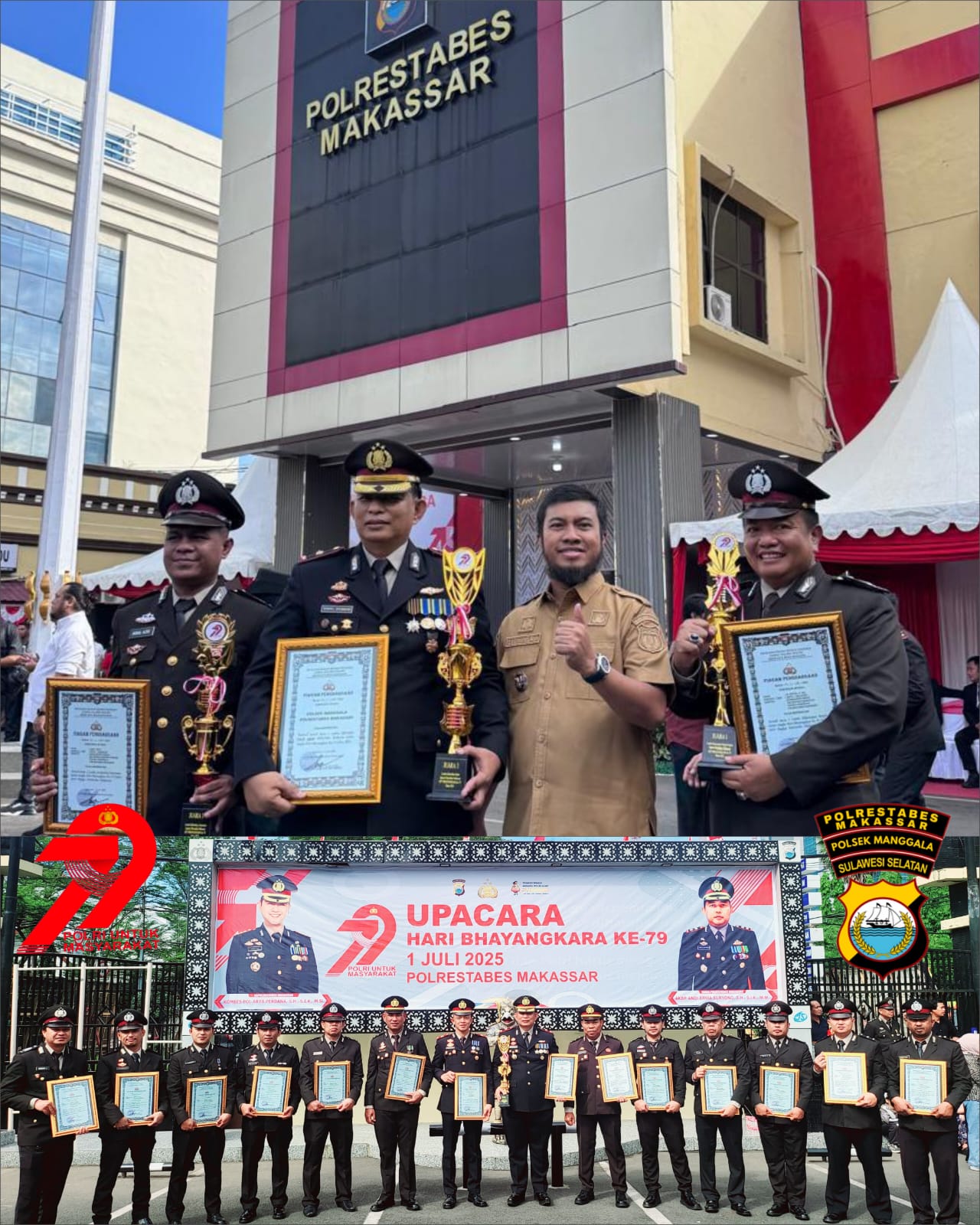 Dalam perayaan Hari Ulang Tahun (HUT) Bhayangkara ke-79 yang digelar pada Selasa, 1 Juli 2025, Polsek Manggala, Polrestabes Makassar, berhasil menyabet sejumlah penghargaan prestisius yang langsung diserahkan oleh Kapolrestabes Makassar, Kombes Pol Arya Perdana, S.H., S.I.K., M.Si.