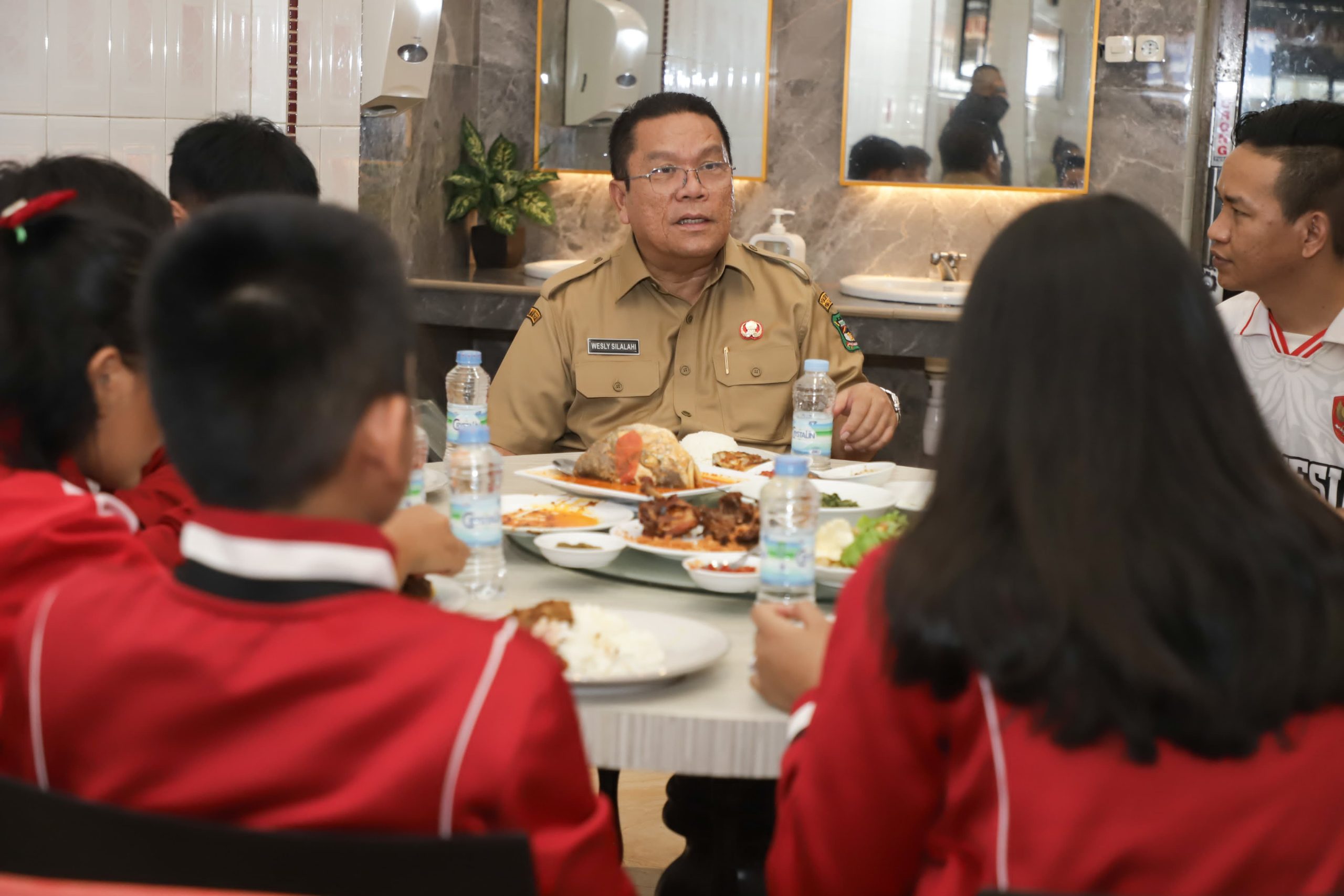 Klivetvindonesia.com P.Siantar – Wali Kota Pematangsiantar Wesly Silalahi SH MKn ramah tamah dan menikmati makan siang bersama para atlet yang baru bertanding di event World MMA Championship 2025, di Sao Paulo, Brazil. Ramah tamah dan makan siang bersama ini digelar di Rumah Makan (RM) Miramar, Jalan Sutomo Kelurahan Proklamasi Kecamatan Siantar Barat, Selasa (01/07/2025).