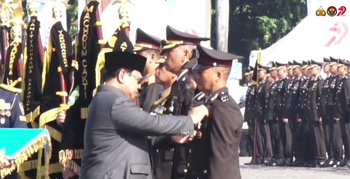 > “Saya mengucapkan terima kasih dan penghargaan setinggi-tingginya kepada seluruh anggota Polri, dari Sabang sampai Merauke, atas dedikasi dan pengabdiannya. Tugas Polri tidak ringan, namun sangat strategis dalam menjaga keutuhan bangsa serta mendukung agenda pembangunan nasional,” ujar Presiden Prabowo dalam pidatonya.