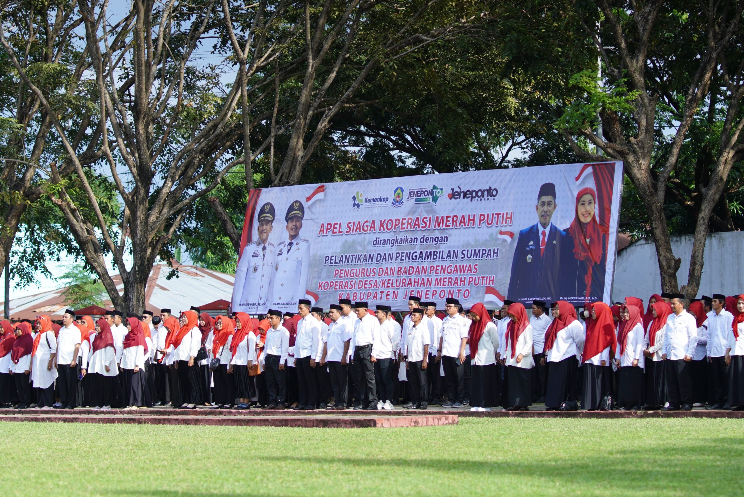 –klivetvindonesia.com– 2 Juli 2025 — Pemerintah Kabupaten Jeneponto menggelar Apel Siaga Koperasi Merah Putih yang dirangkaikan dengan pelantikan serta pengambilan sumpah pengurus dan badan pengawas Koperasi Merah Putih tingkat desa/kelurahan se-Kabupaten Jeneponto. Kegiatan ini dipusatkan di halaman Kantor Bupati Jeneponto pada Rabu pagi, 2 Juli 2025.